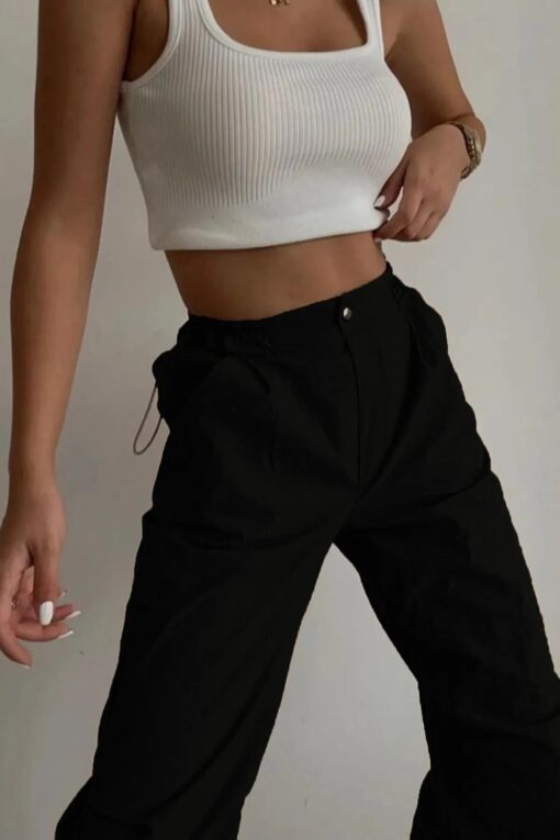 İkmal Siyah Ayarlanabilir Bel Ve Paça Paraşüt Kumaş