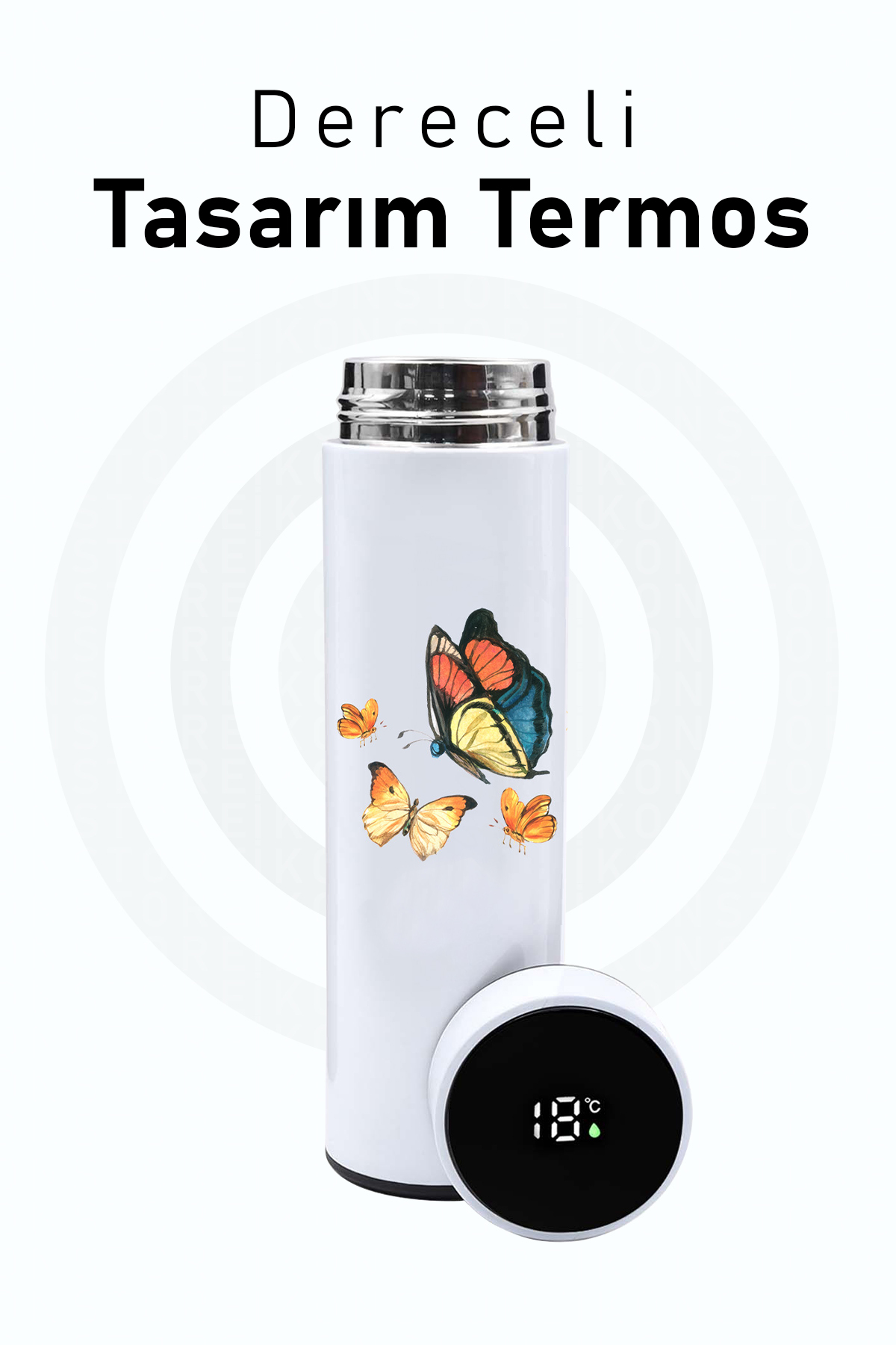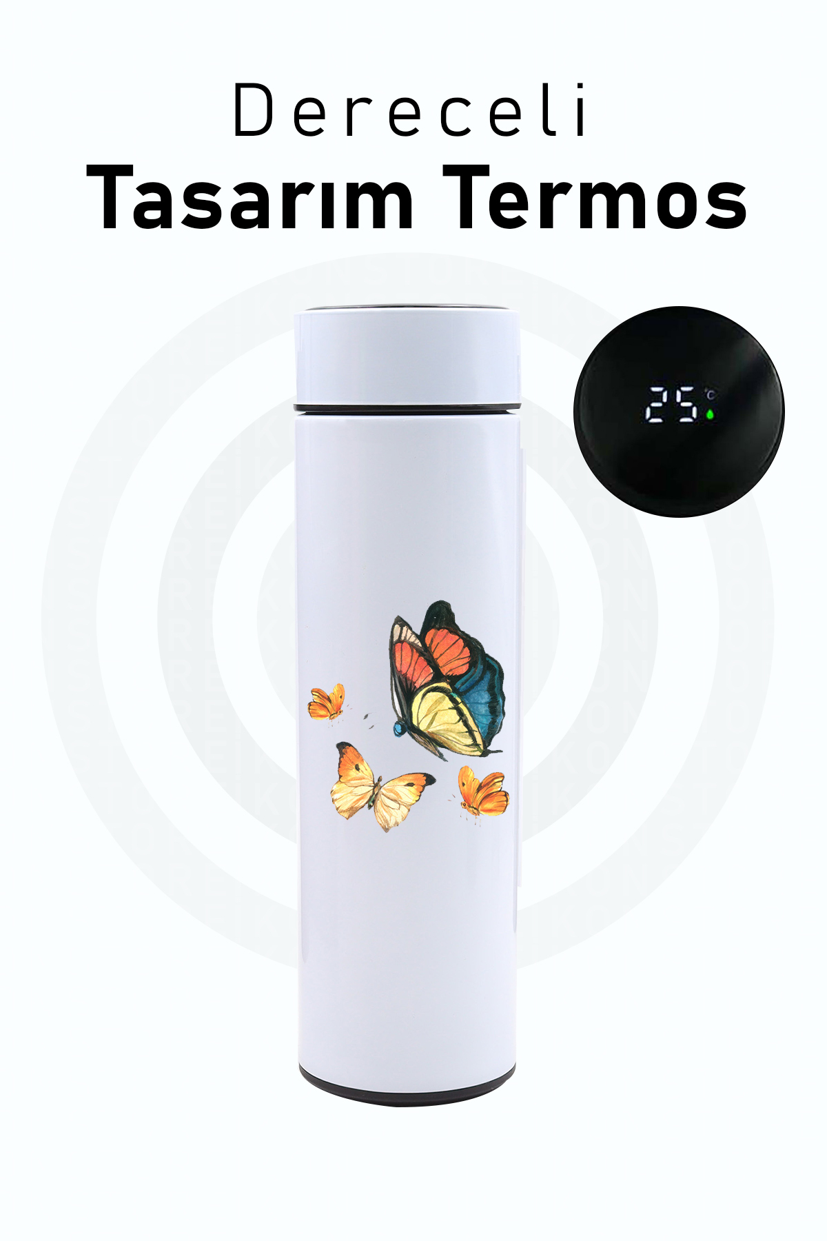 İkon store Özel Tasarım Dereceli 500 Ml Beyaz Termos
