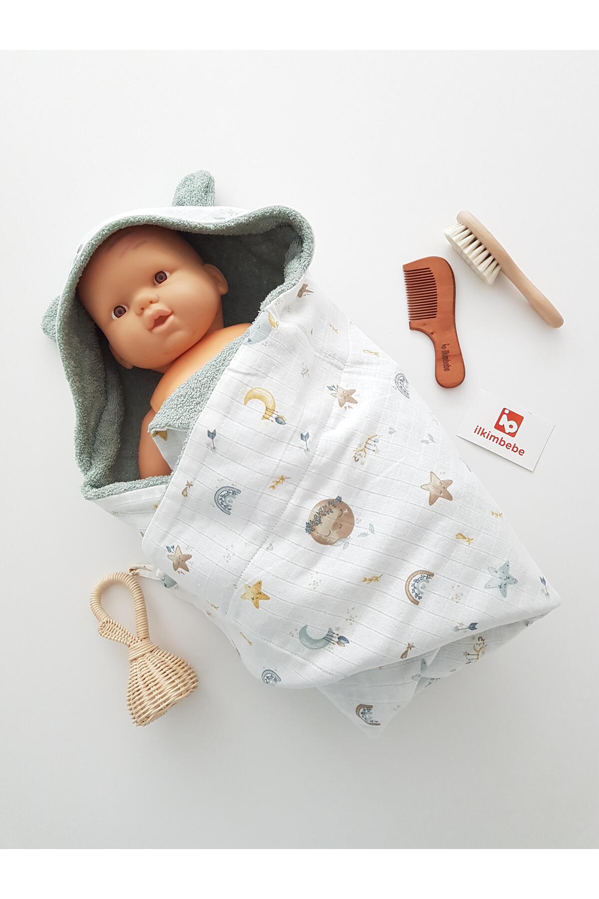 ilkimbebe Dolunay Müslinli Çift Taraflı Kundak Bebek Havlusu 80×80
