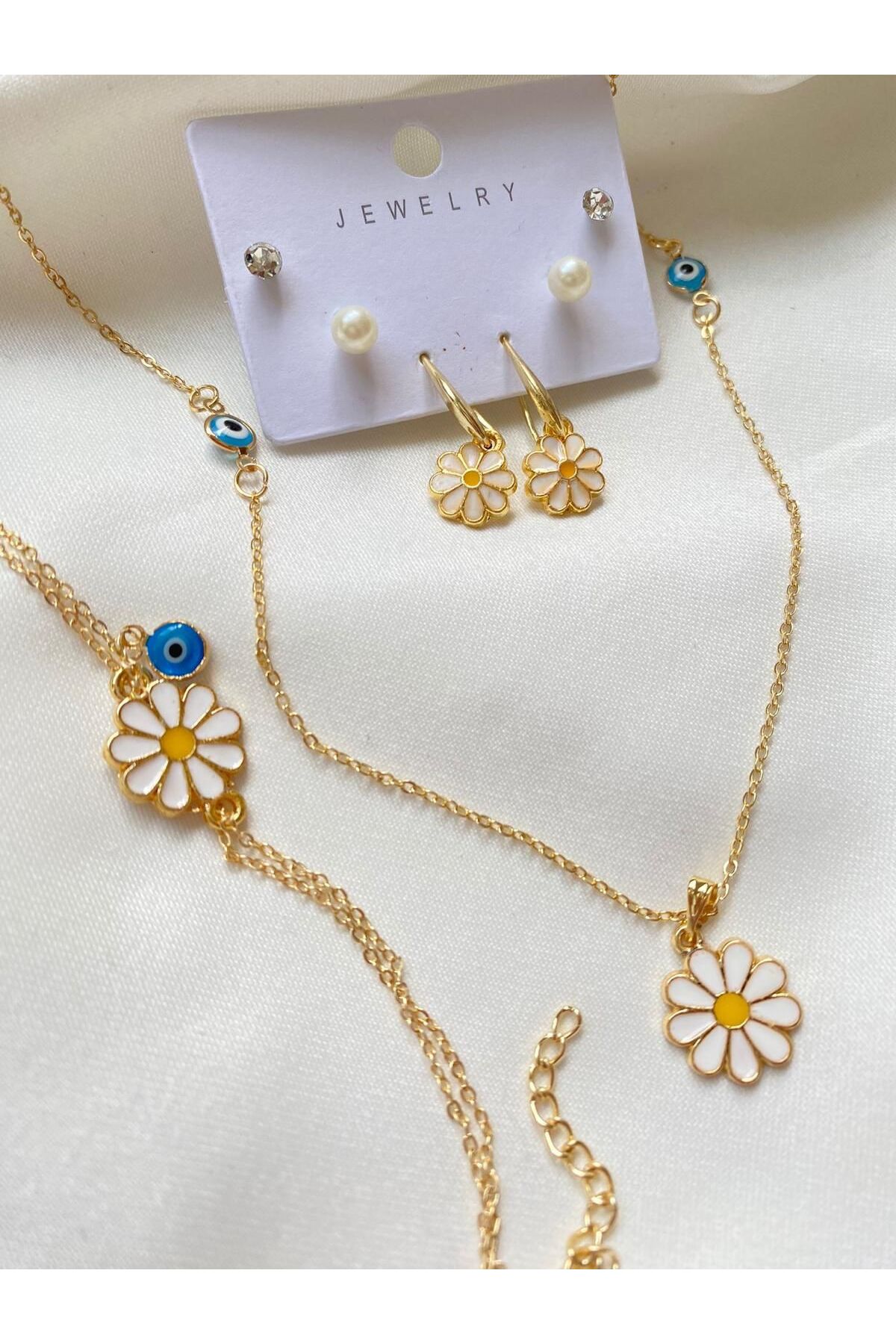 İlraysa Papatyalı Kolye, Küpe Ve Bileklik Seti