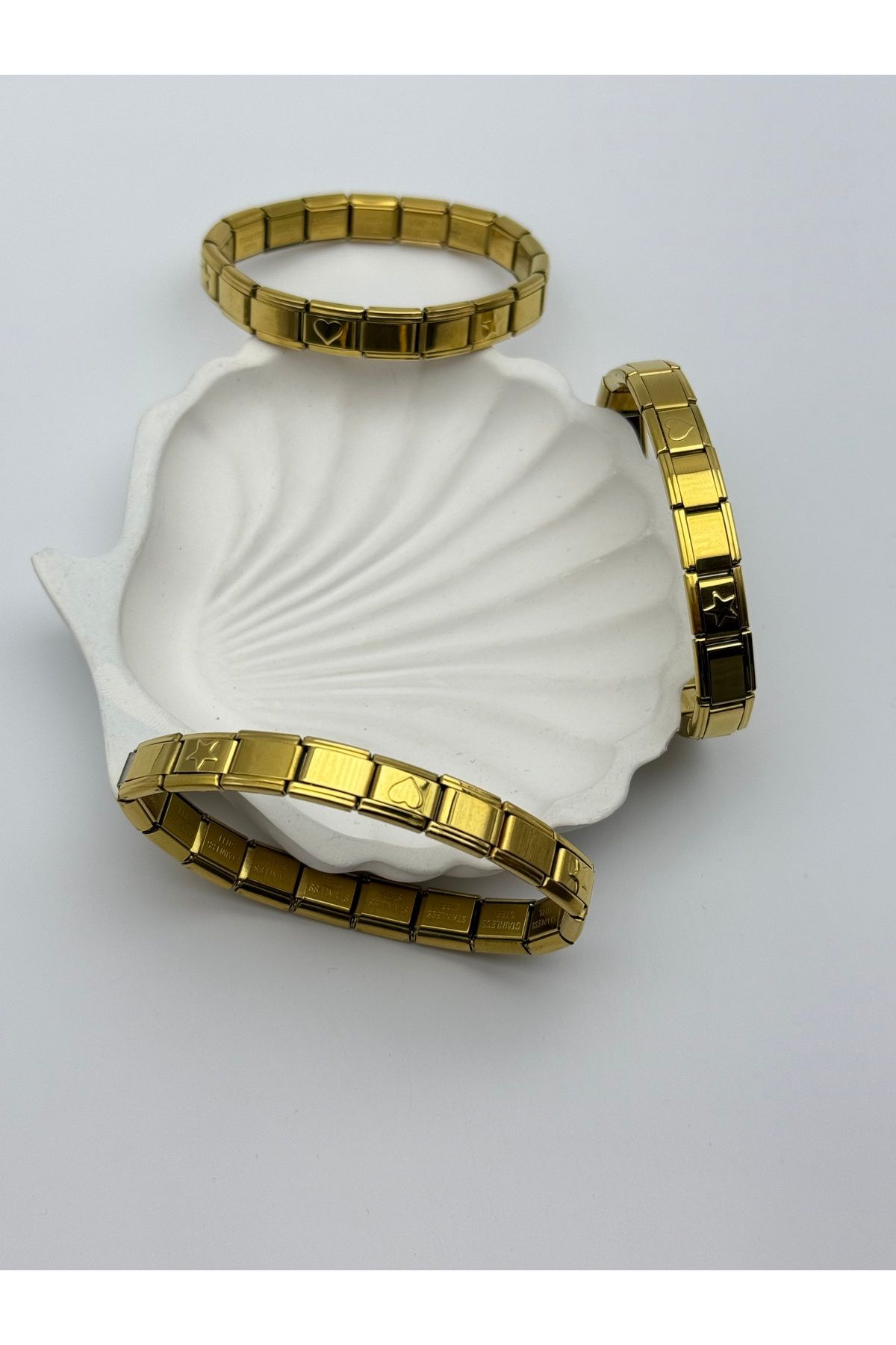 ilvesa shop İtalyan Charm Bileklik 6 Adet Kalp Ve Yıldız Charmlı Gold