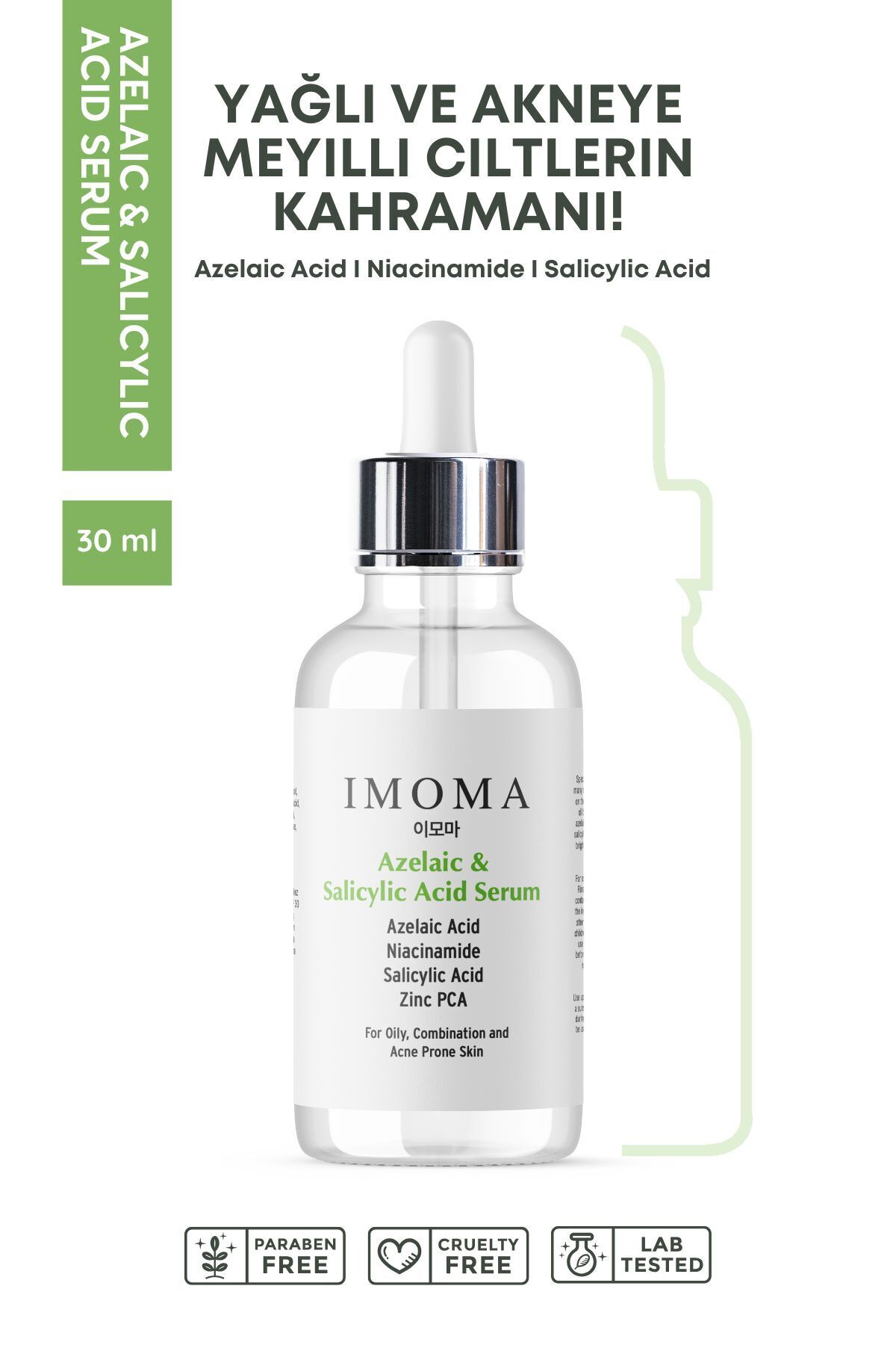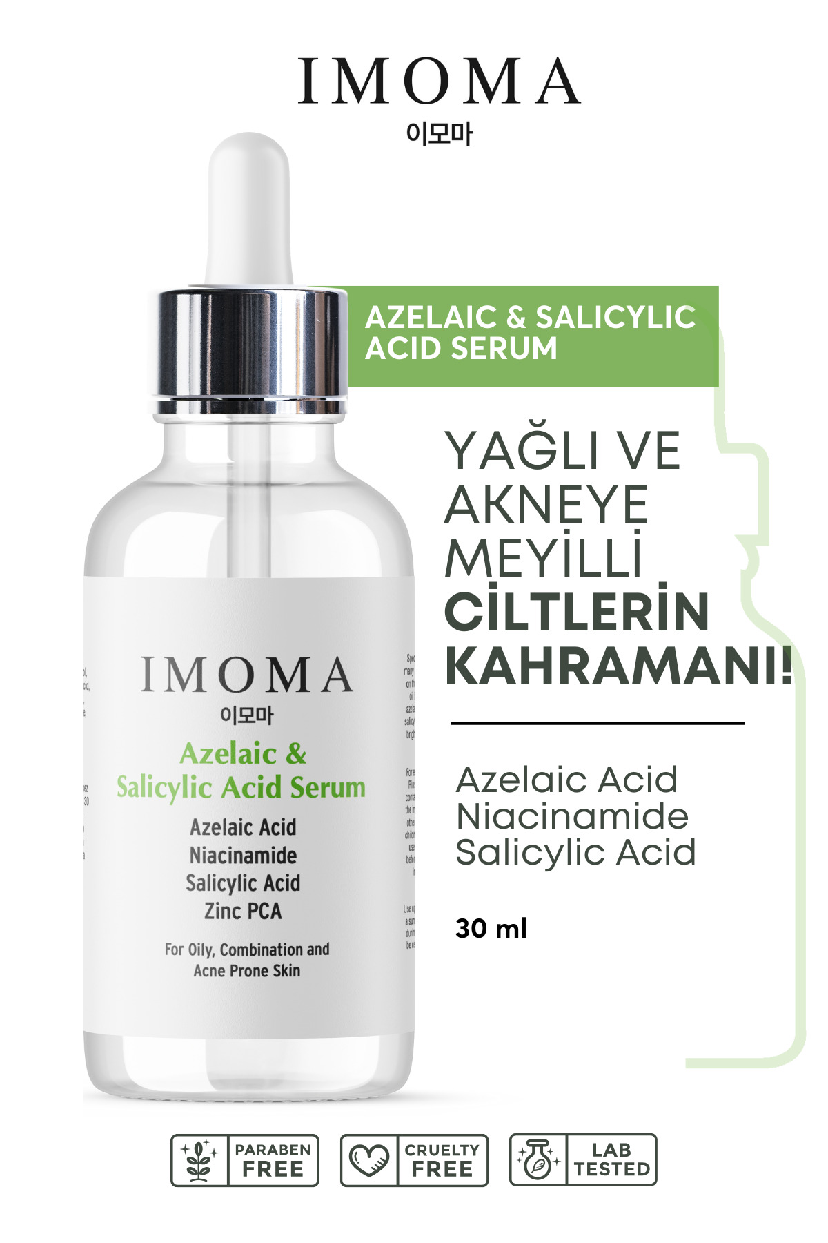 IMOMA Sivilce ve Akne Karşıtı Gözenek Sıkılaştırıcı Azelaic ve Salicylic Acid, Niacinamide, Zinc PCA Serum