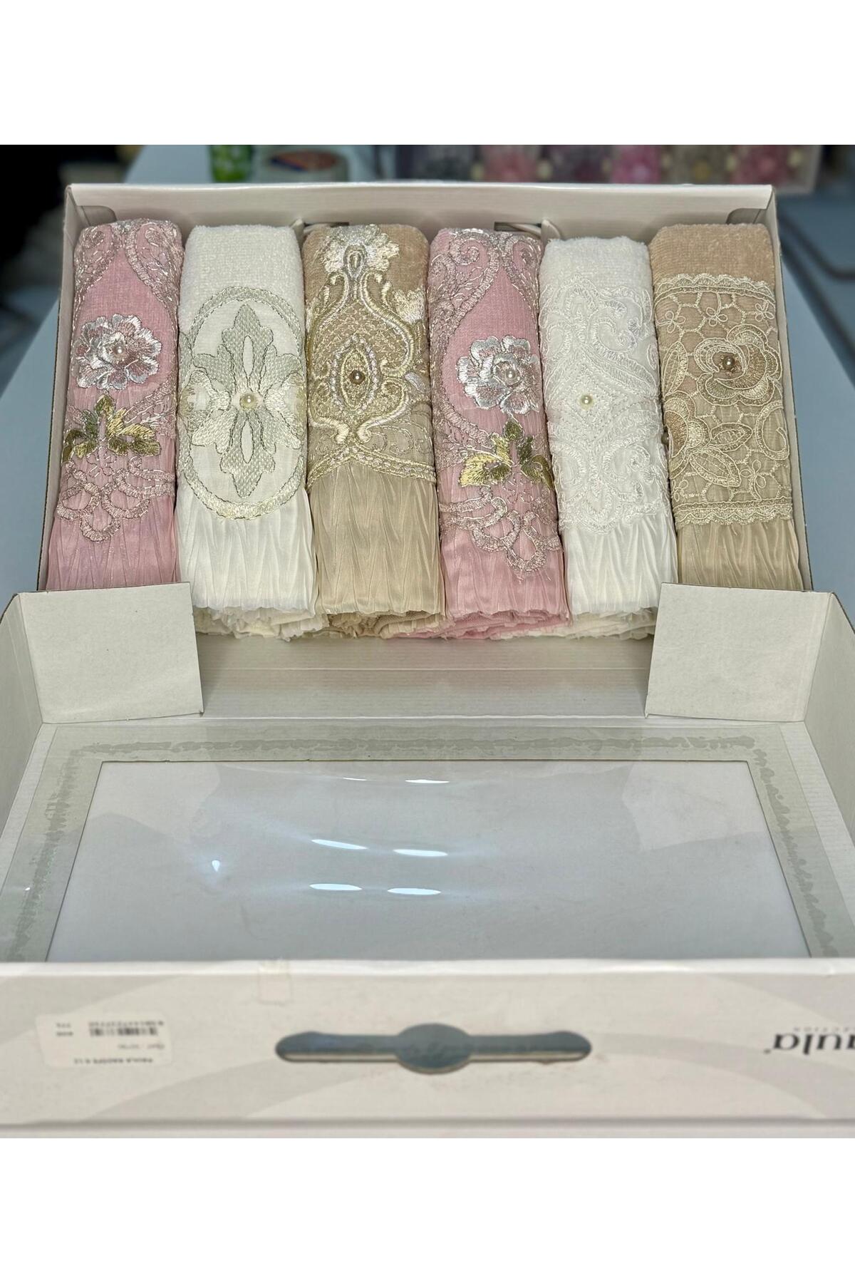 in disco KUTULU ÇEYİZLİK EL YÜZ HAVLUSU Saten Işleme Desenli Güpürlü Kutulu Lüks Çeyizlik 50×90 6’lı
