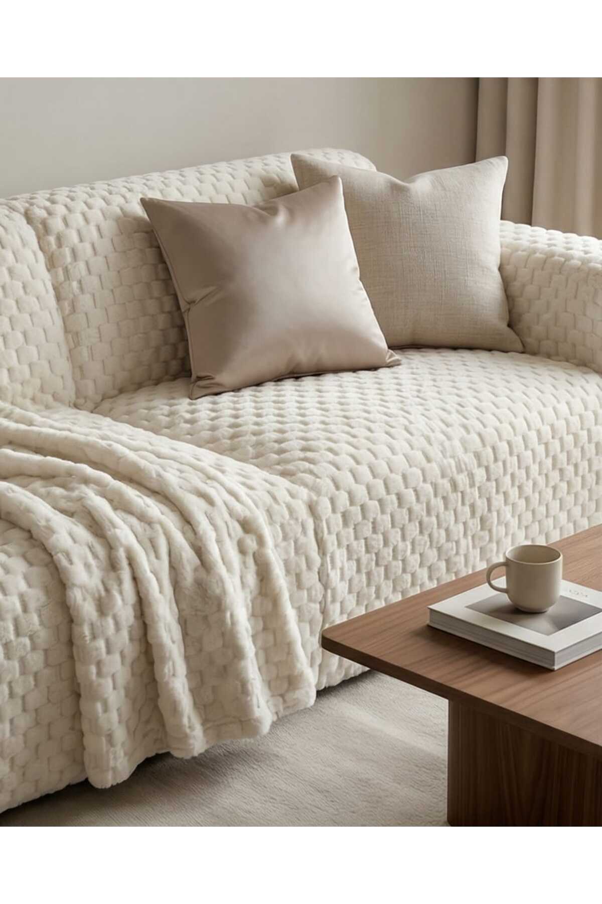 incila home AURİVA Peluş Koltuk Örtüsü Pofuduk Bubble Krem Sadece Oturmak Için 1 Adet 180 X 220 cm