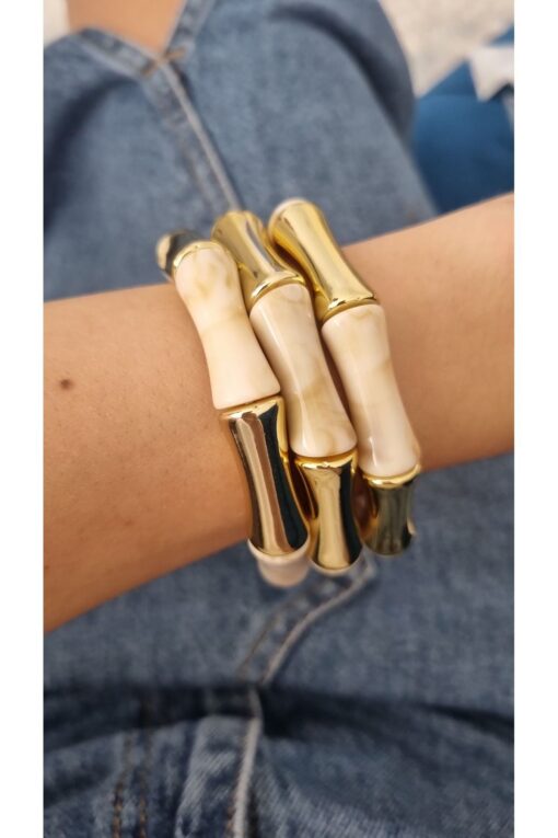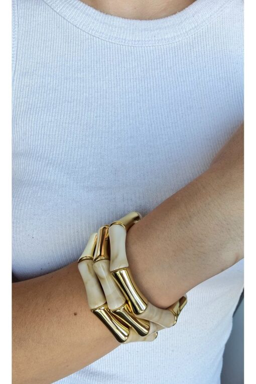 İNİTİUM Kemik 3’lü Bilezik Seti (Krem,Gold)