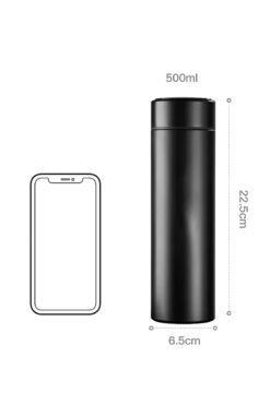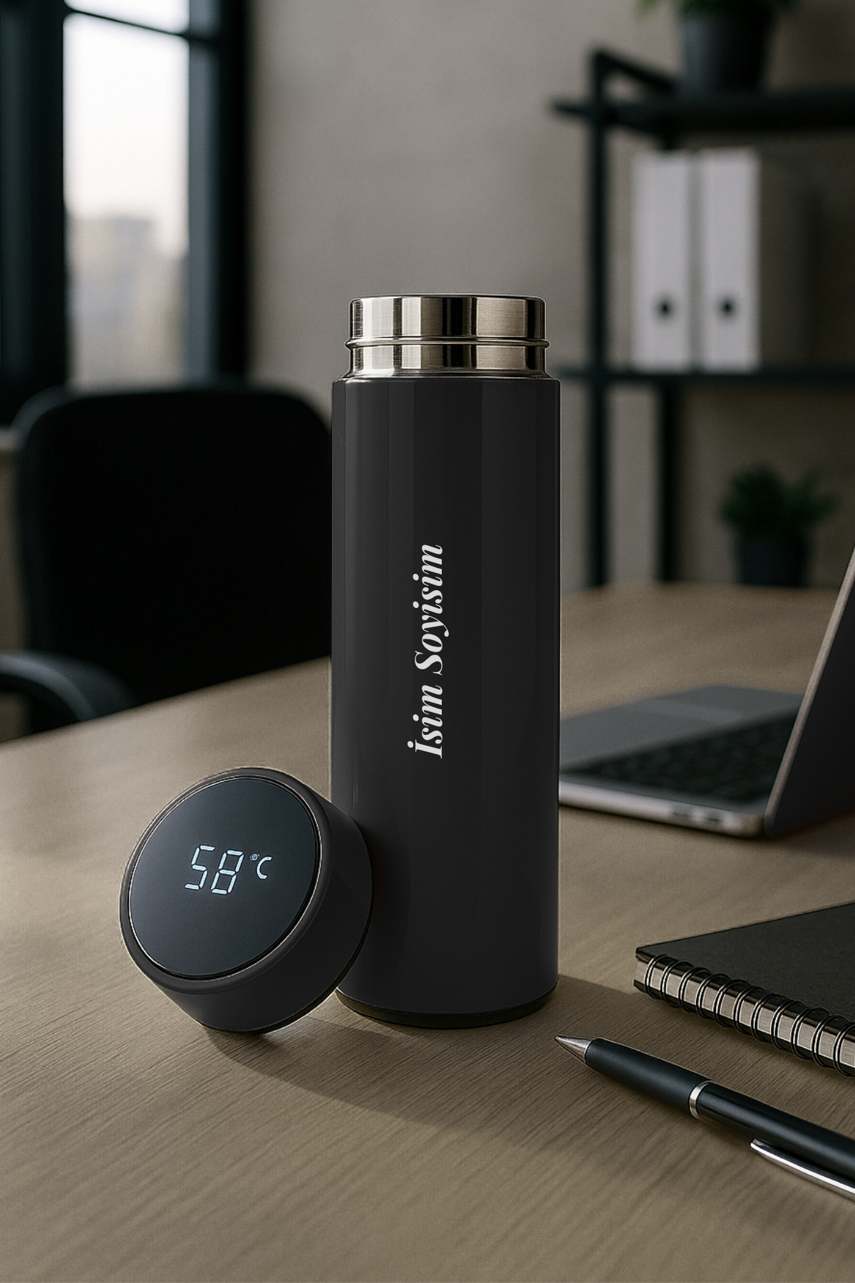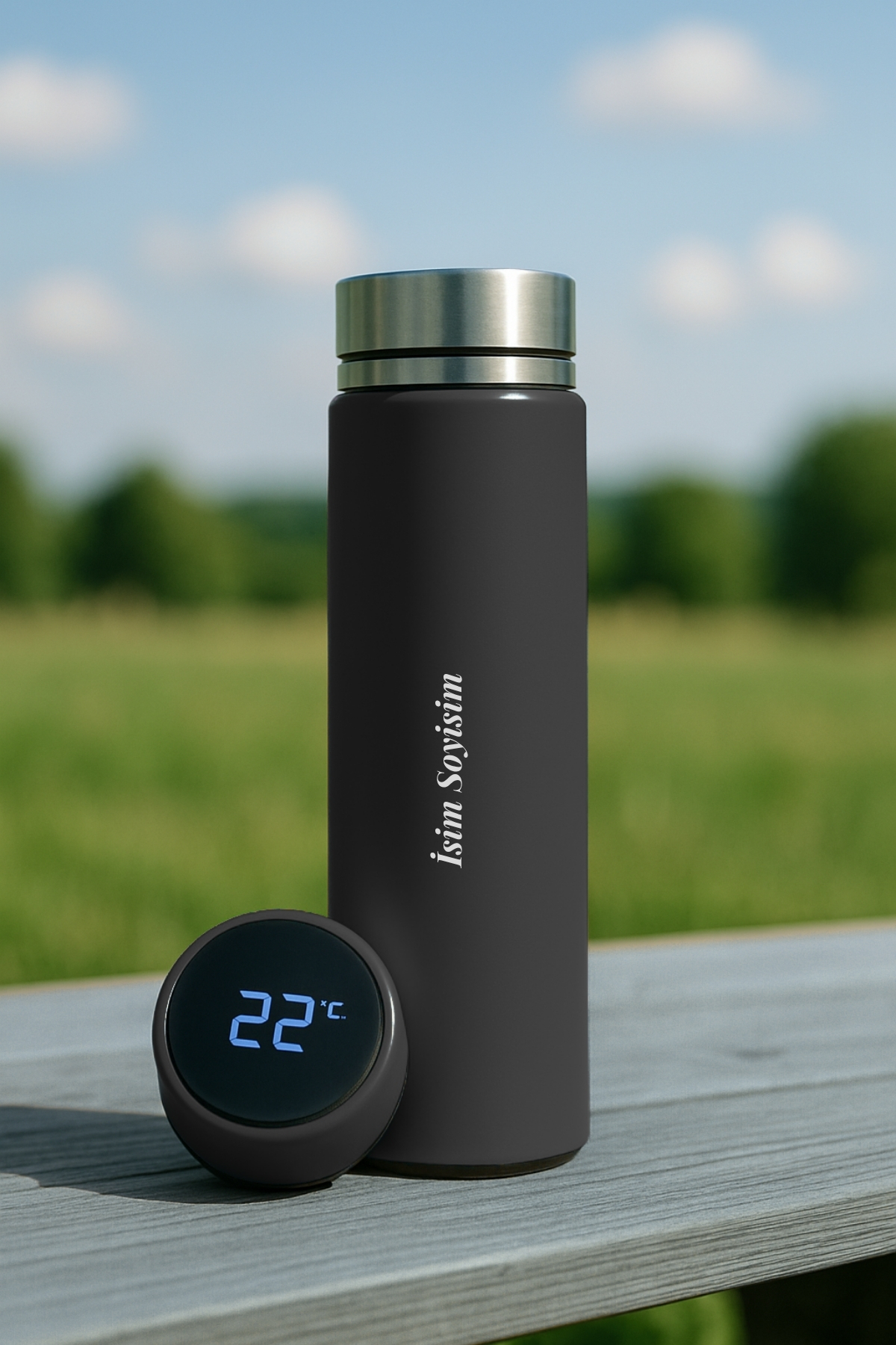 inkglo Siyah Kişiye Özel Akıllı Termos Dijital Sıcaklık Göstergeli Paslanmaz Çelik 500 ml