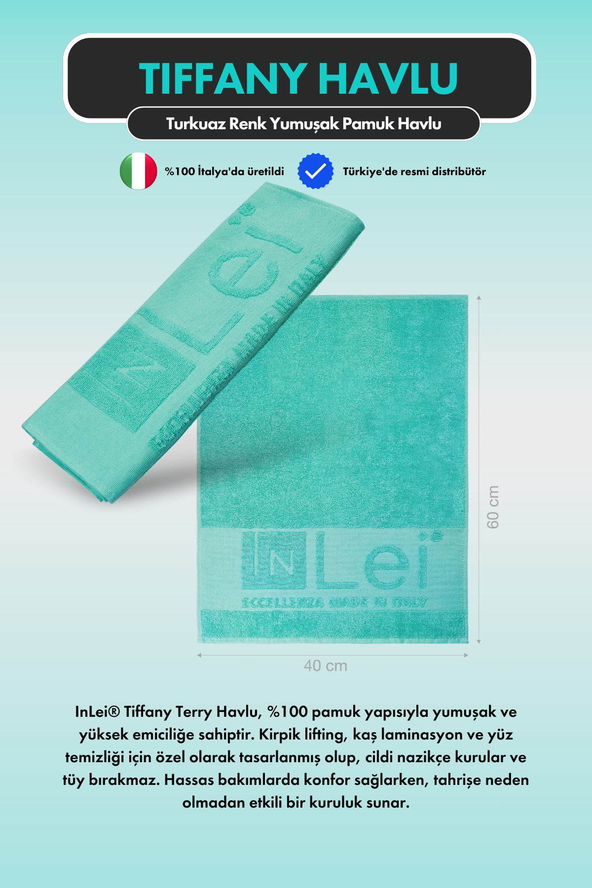 İnLei Terry Turkuaz Renk Yumuşak ve Yüksek Emiciliğe Sahip Profesyonel Havlu ürününü en uygun fiyata kozmetikara.com sitemizden sipariş verebilirsiniz.