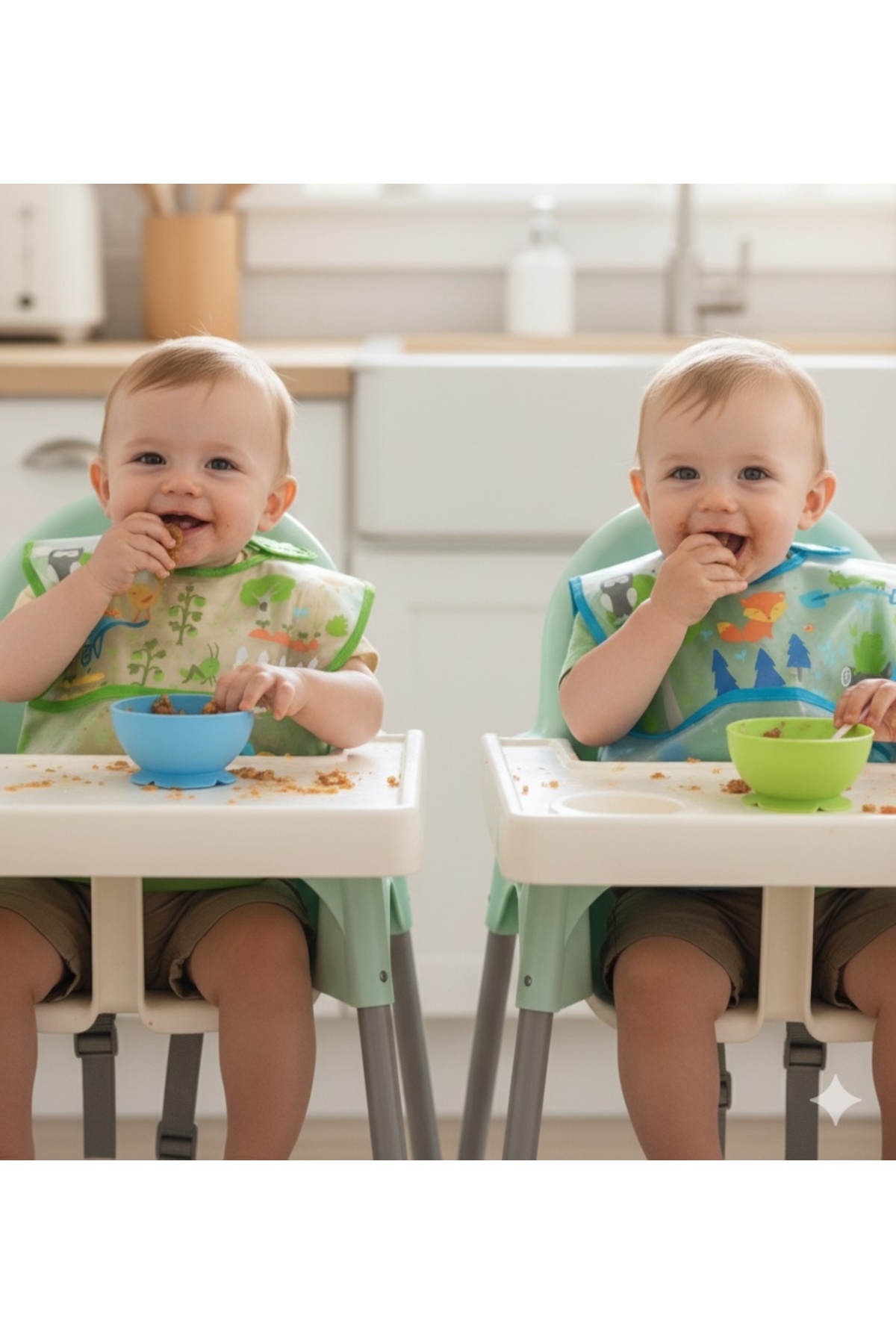 iplay 2 Adet, Mavi ve Yeşil, I Play Su Geçirmez 9-18 Ay Eva Kumaş Bebek Cırtlı Mama Önlüğü, 2’li Paket