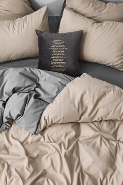 İQON Lastikli Çarşaflı Nevresim Takımı Çift Kişilik Bej – Gri