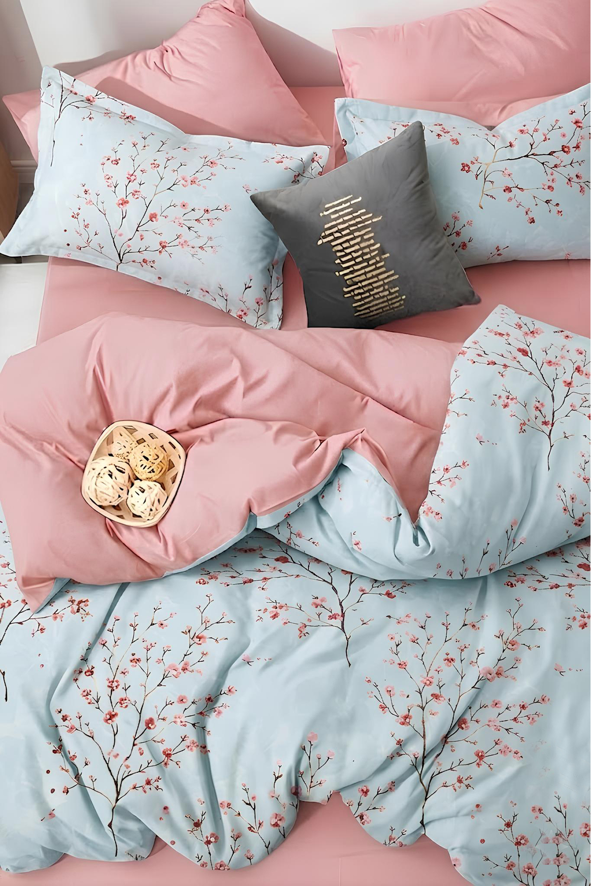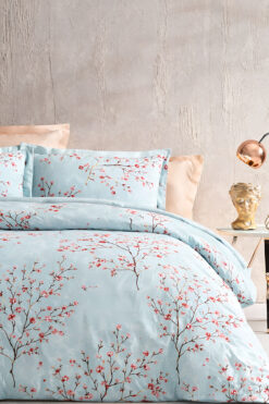 İQON Lastikli Çarşaflı Nevresim Takımı Çift Kişilik Blossom Mavi