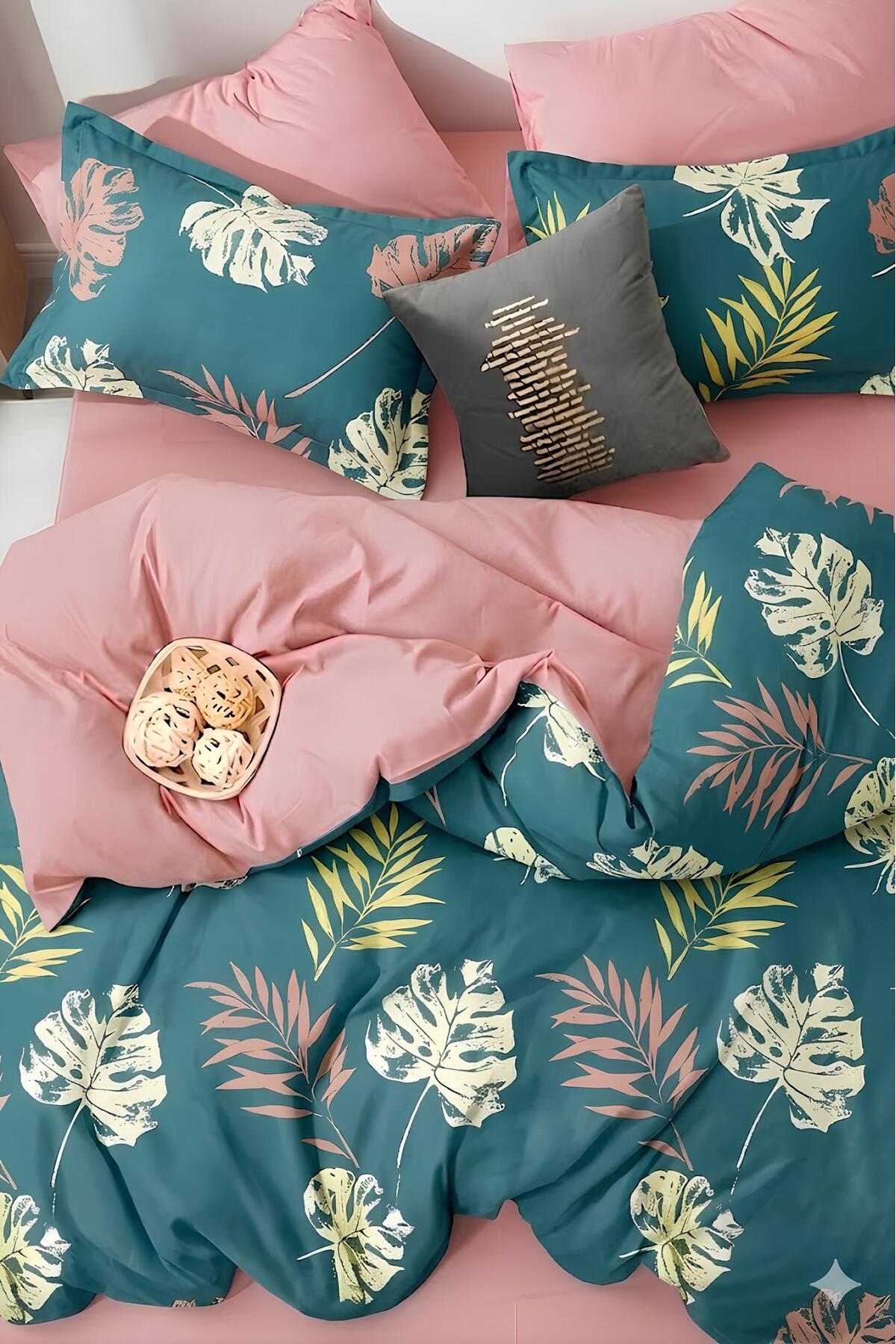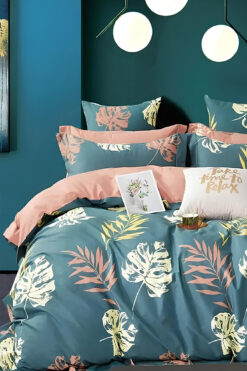 İQON Lastikli Çarşaflı Nevresim Takımı Çift Kişilik Leaf Petrol