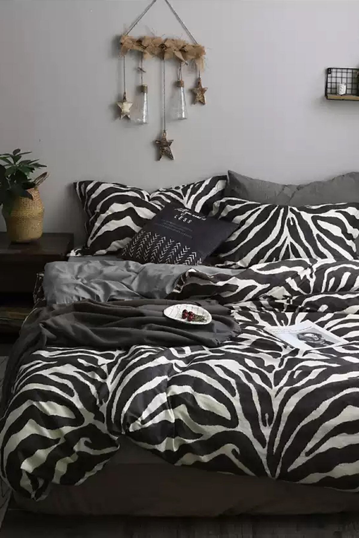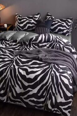 İQON Lastikli Çarşaflı Nevresim Takımı Çift Kişilik Zebra Siyah