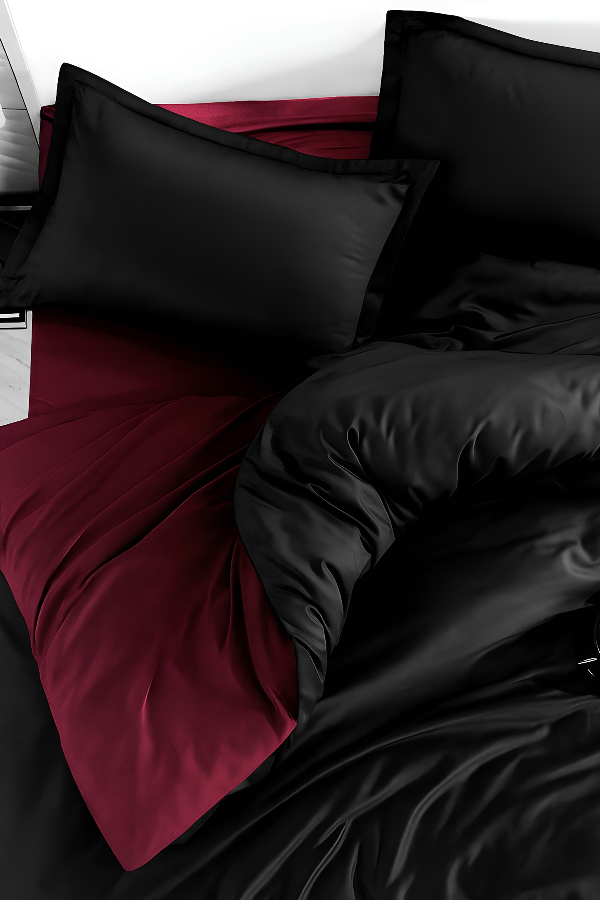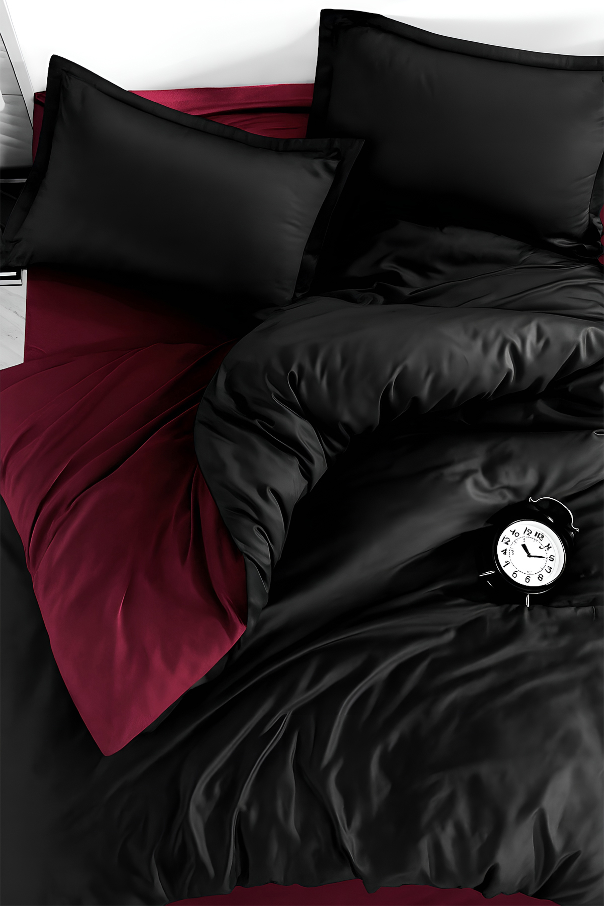 İQON Lastikli Çarşaflı Nevresim Takımı Tek Kişilik Bordo – Siyah