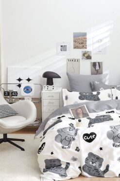 İQON Lastikli Çarşaflı Nevresim Takımı Tek Kişilik Sevimli Kediler Gri