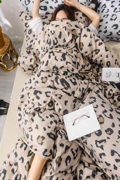 İQON Lastikli Çarşaflı Nevresim Takımı Tek Kişilik Leopar Kahve