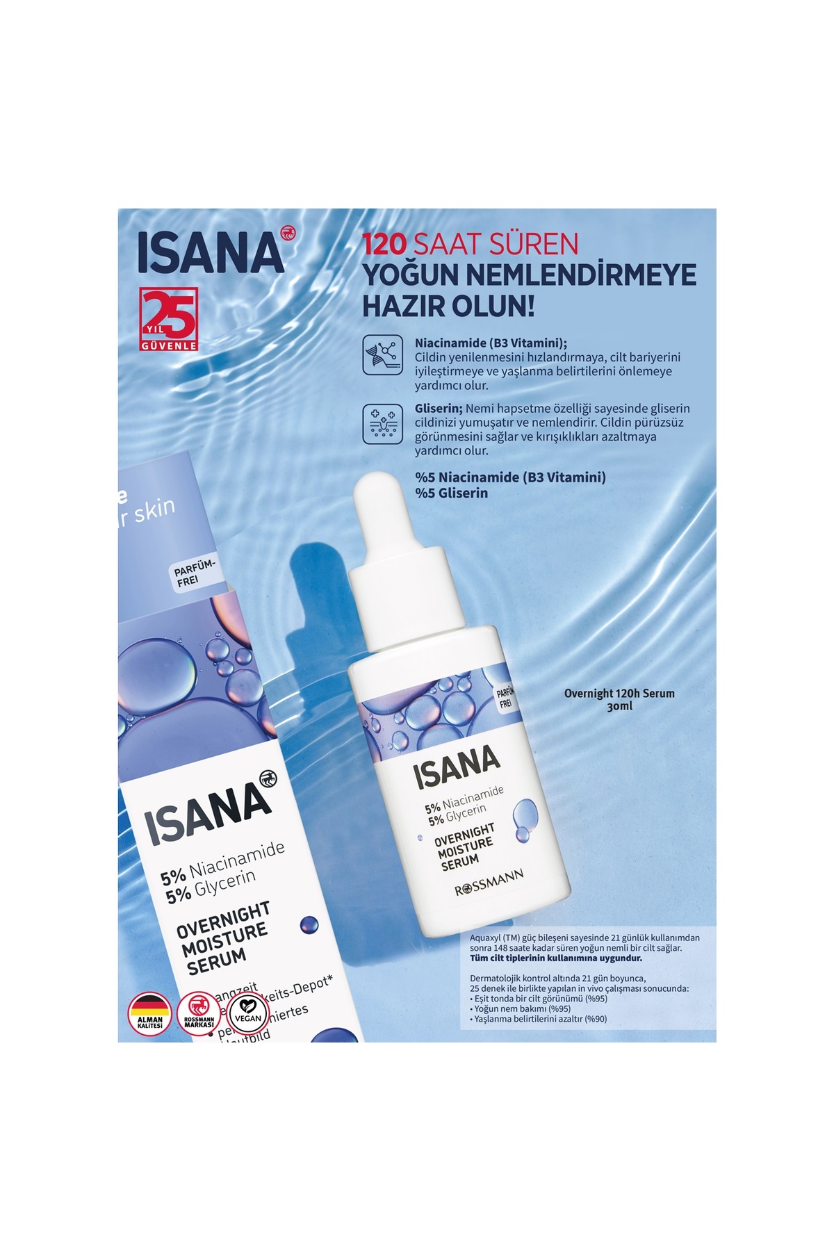 ISANA Love Your Skin Serum Overnight Niacinamide Gliser 30 ml ürünü ucuz fiyat, hızlı kargo imkanı ile hemen sitemizden sipariş verin.