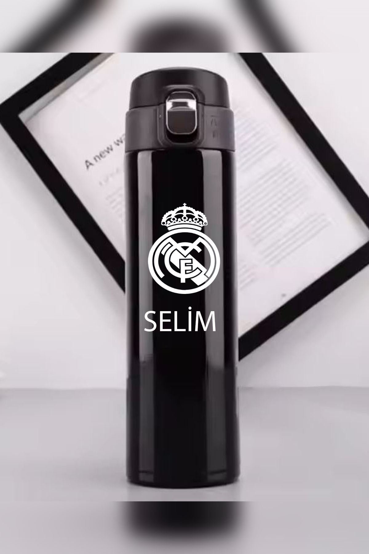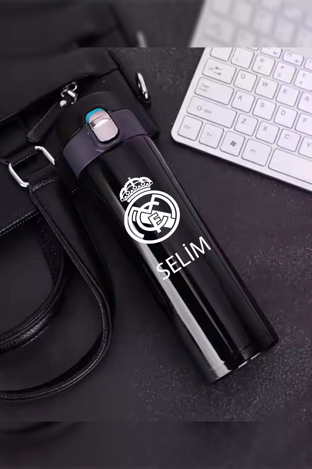 İŞTE BU Kilitli Paslanmaz Çelik Vakumlu REAL MADRID Termos 500 ml – Sızdırmaz & Kişiselleştirilebilir