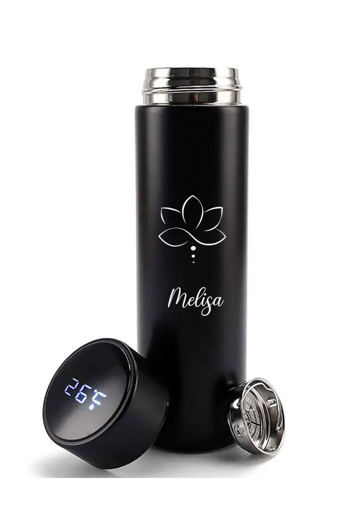 İŞTE BU Kişiye Özel 500ML Dijital Göstergeli Çiçek Baskılı 304 Çelik Akıllı Termos – Isı Korumalı Şişe