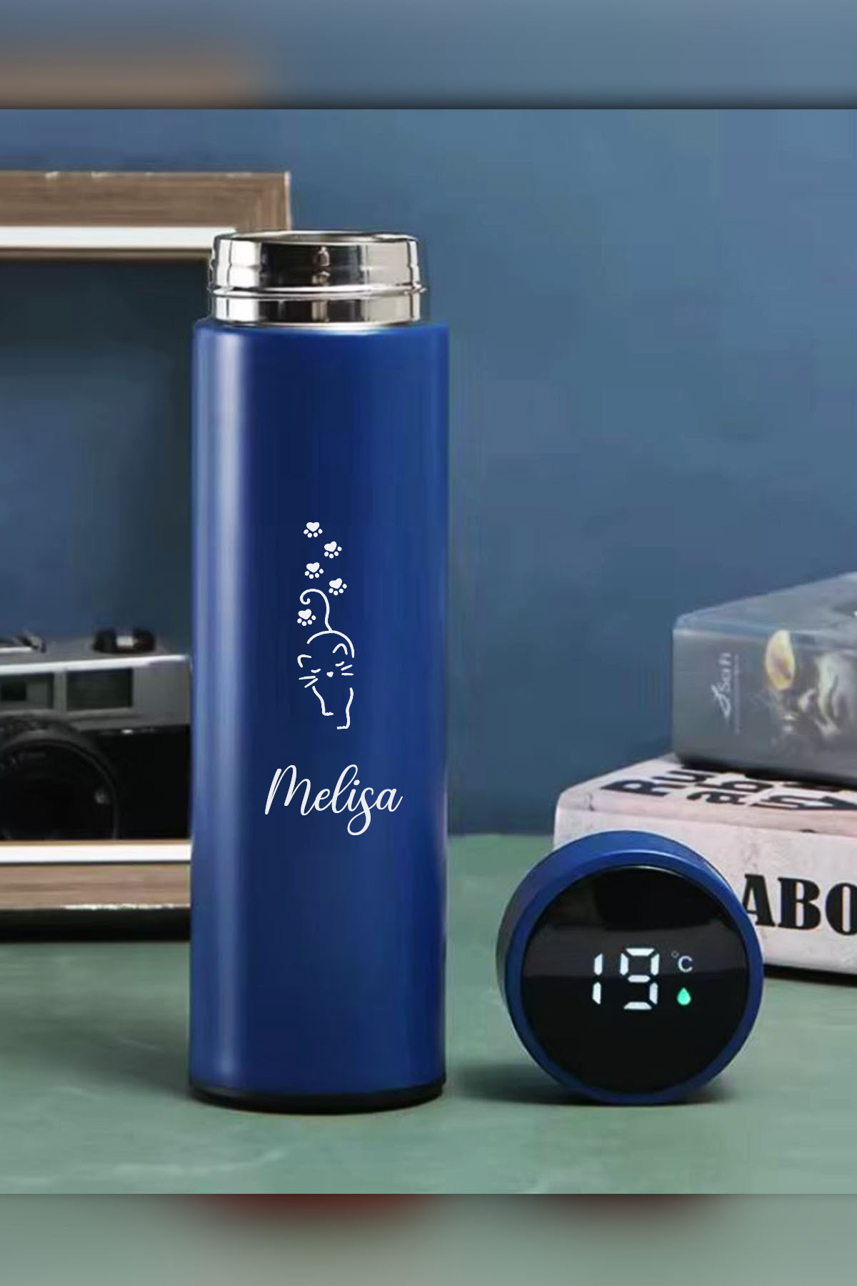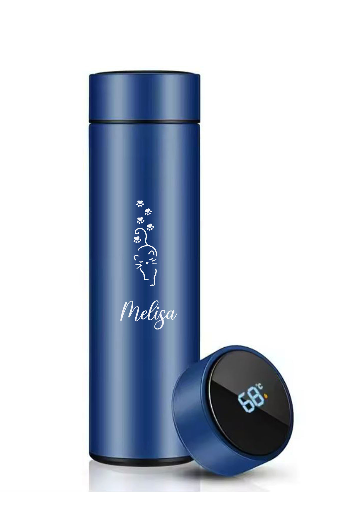 İŞTE BU Kişiye Özel 500ML Dijital Göstergeli Kedi Baskılı 304 Çelik Akıllı Termos – Isı Korumalı Şişe