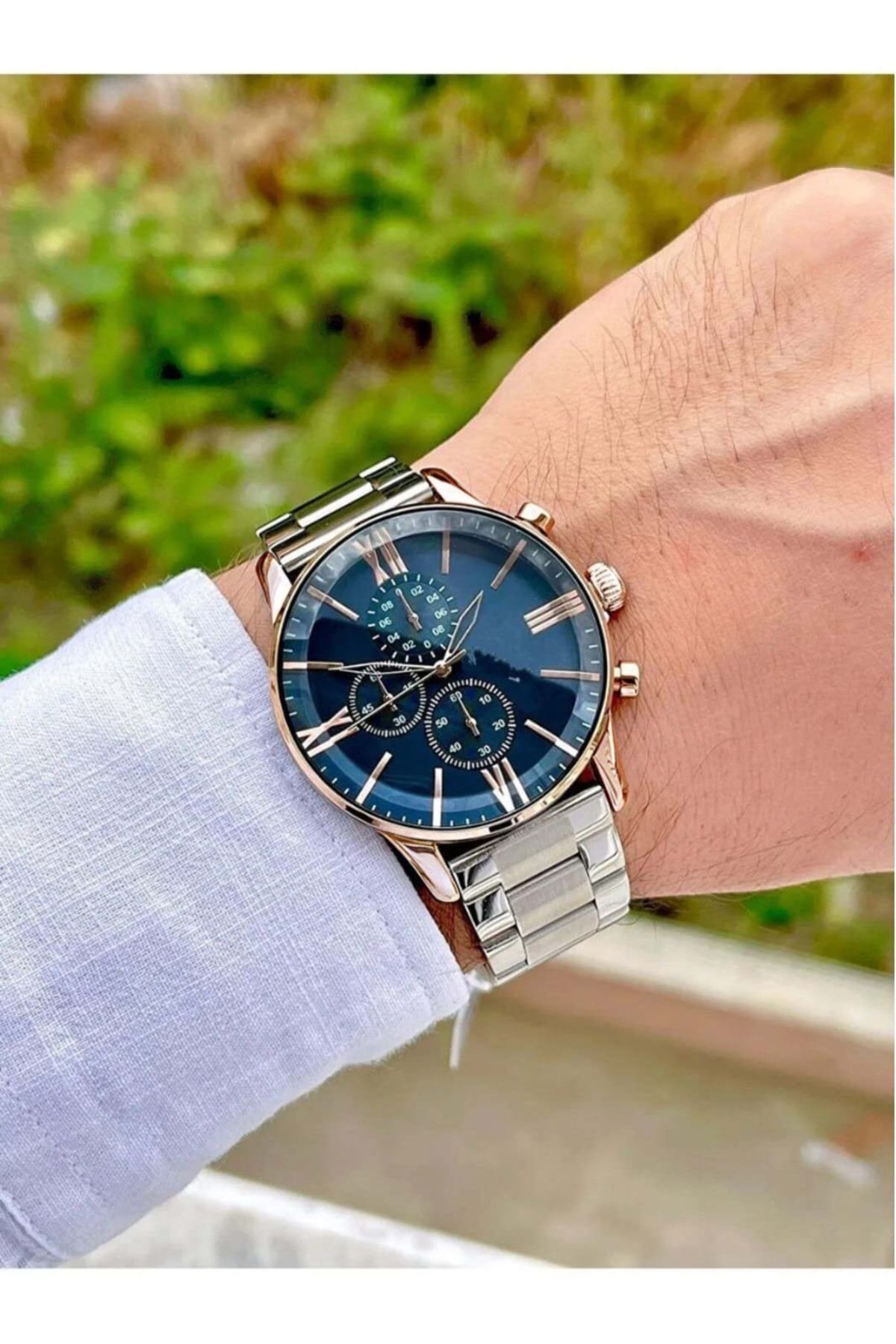 İSTLİV Gümüş Kordon Rose Kasa Lacivert Kadran Rose Göstergeler Erkek Analog Kol Saati