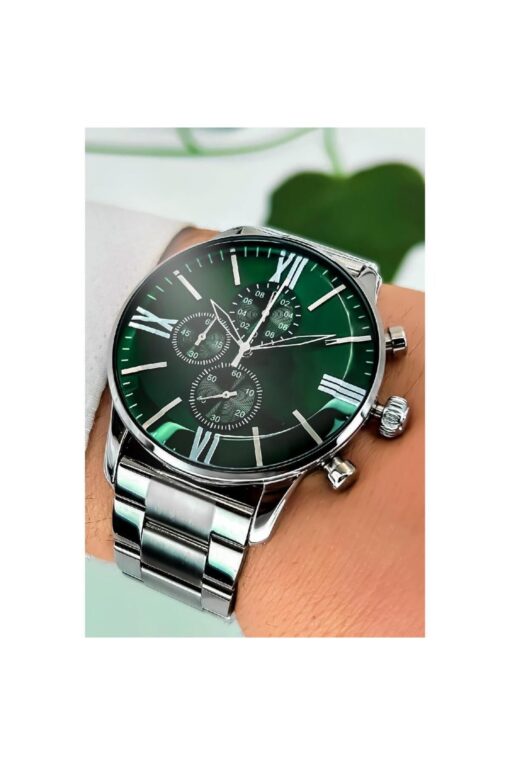 İSTLİV Roma Rakamlı Gümüş renk Yeşil kadran Erkek Kol Saati