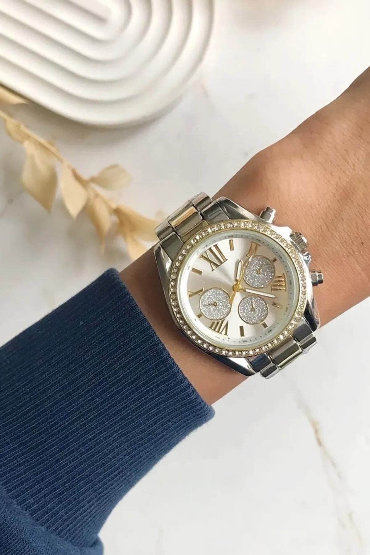 İSTLİV Zirkon Taşlı Gümüş-gold Renk Analog Kol Saati