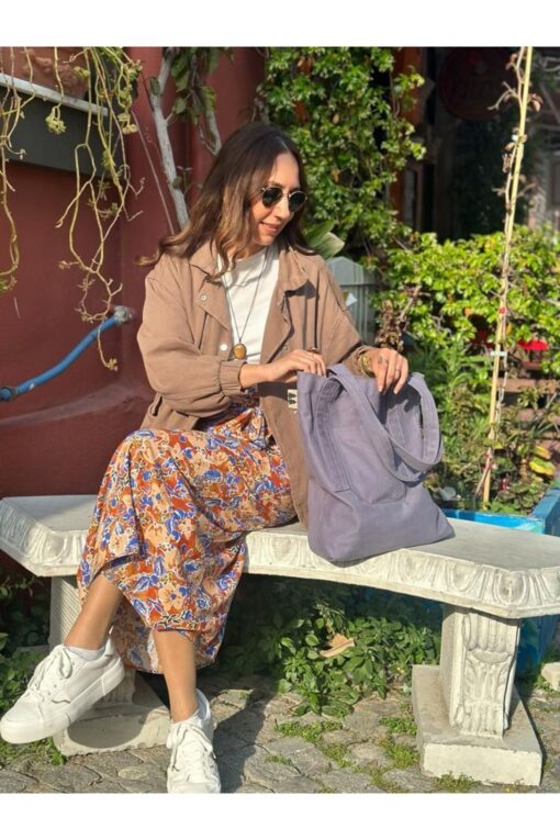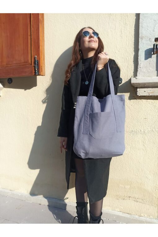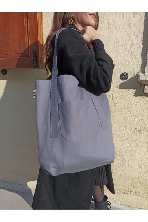 Gabardin kumaştan üretilmiş, cepli, sağlam, günlük, omuz çantası.