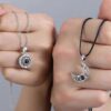 İYİ MODA 100 Dilde Seni Seviyorum Ay Yıldız Mıknatıslı Birleşen Sevgili Kolyesi Hediyelik Kolye