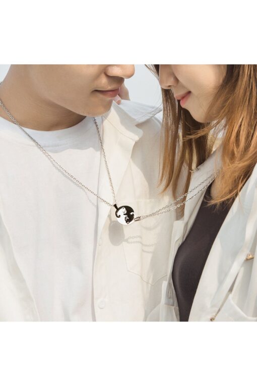 İYİ MODA 2 Adet Yin Yang Kedil Kolye Best Friends Sevgili Çift Arkadaş Kolyesi