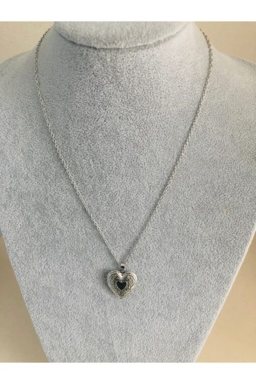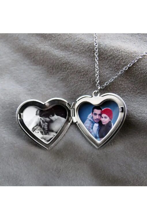 İYİ MODA Gümüş Renk Kalp Desenli Açılabilir Kapaklı Resimlikli Kalp Kolye