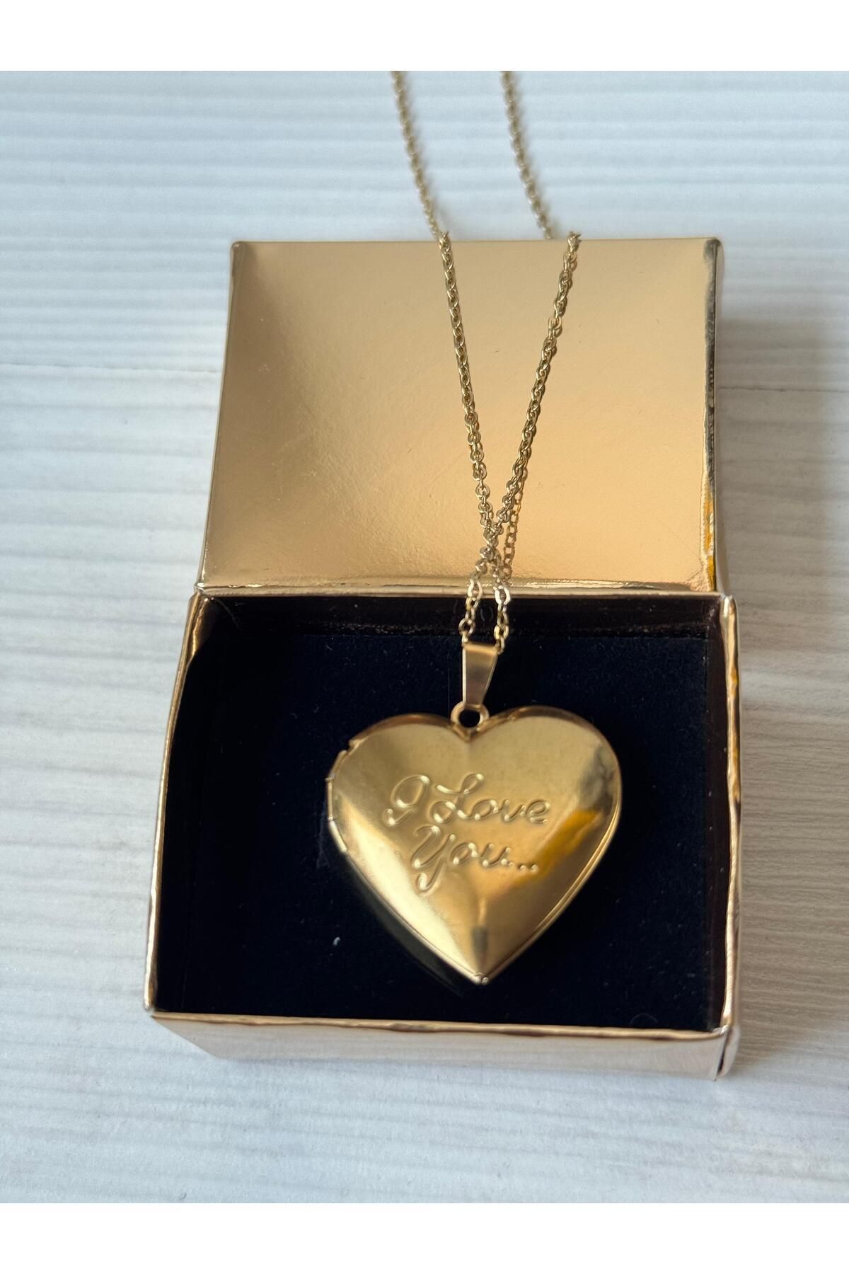 İYİ MODA Romantik I Love You Yazılı Resimlikli Kolye | Lux Hediyelik Kalpli Kapaklı İçi Açılan Kolye