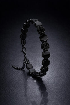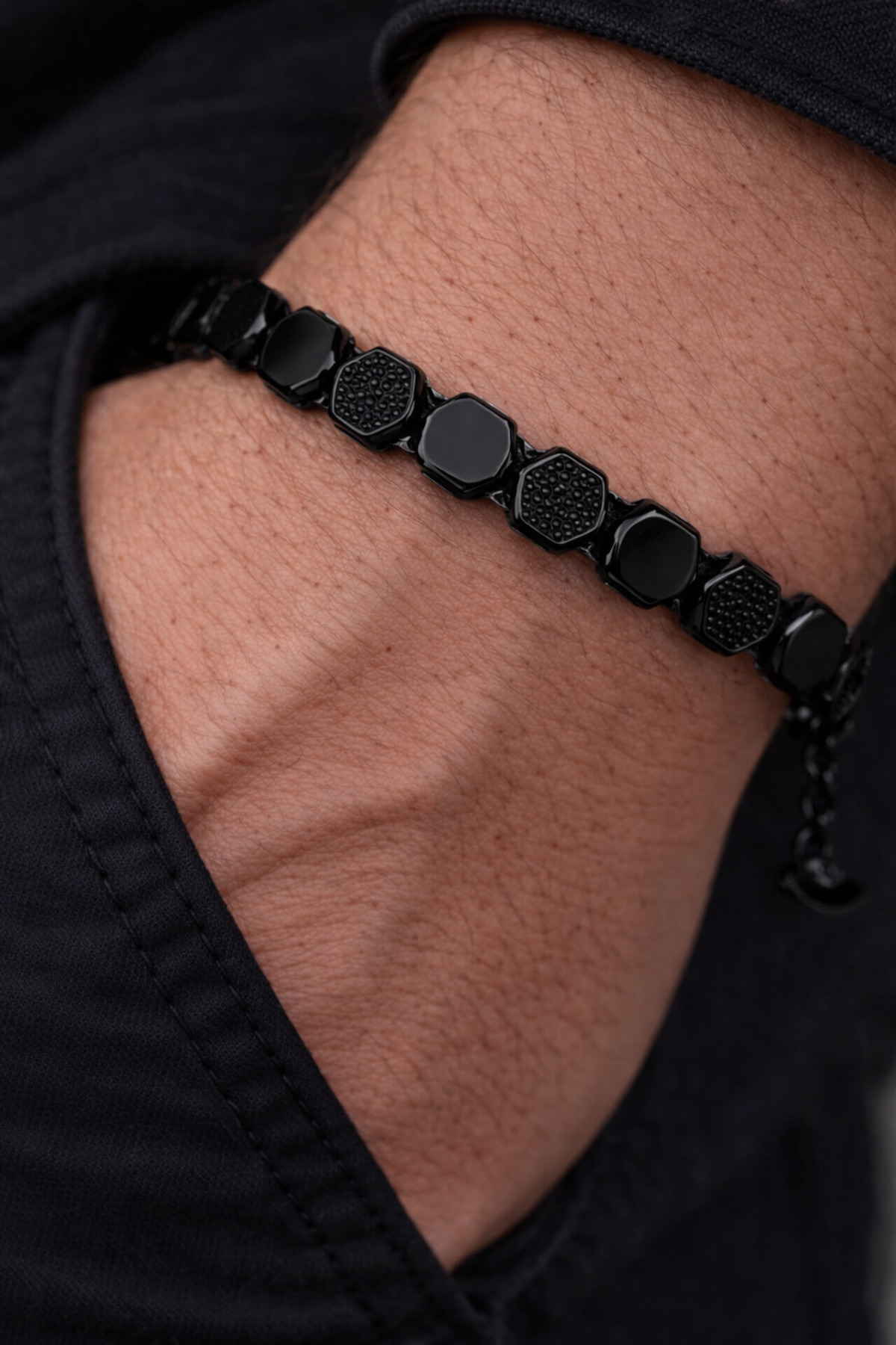 İyyaKee Erkek Kadın Bileklik Zirkon Taşlı Ayarlanabilir Hematit Çelik Bileklik