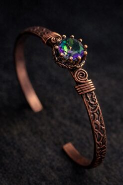 İyyaKee Kadın Bakır Bileklik Yüzük Set Mistik Topaz Taşlı Kelepçe Bilezik