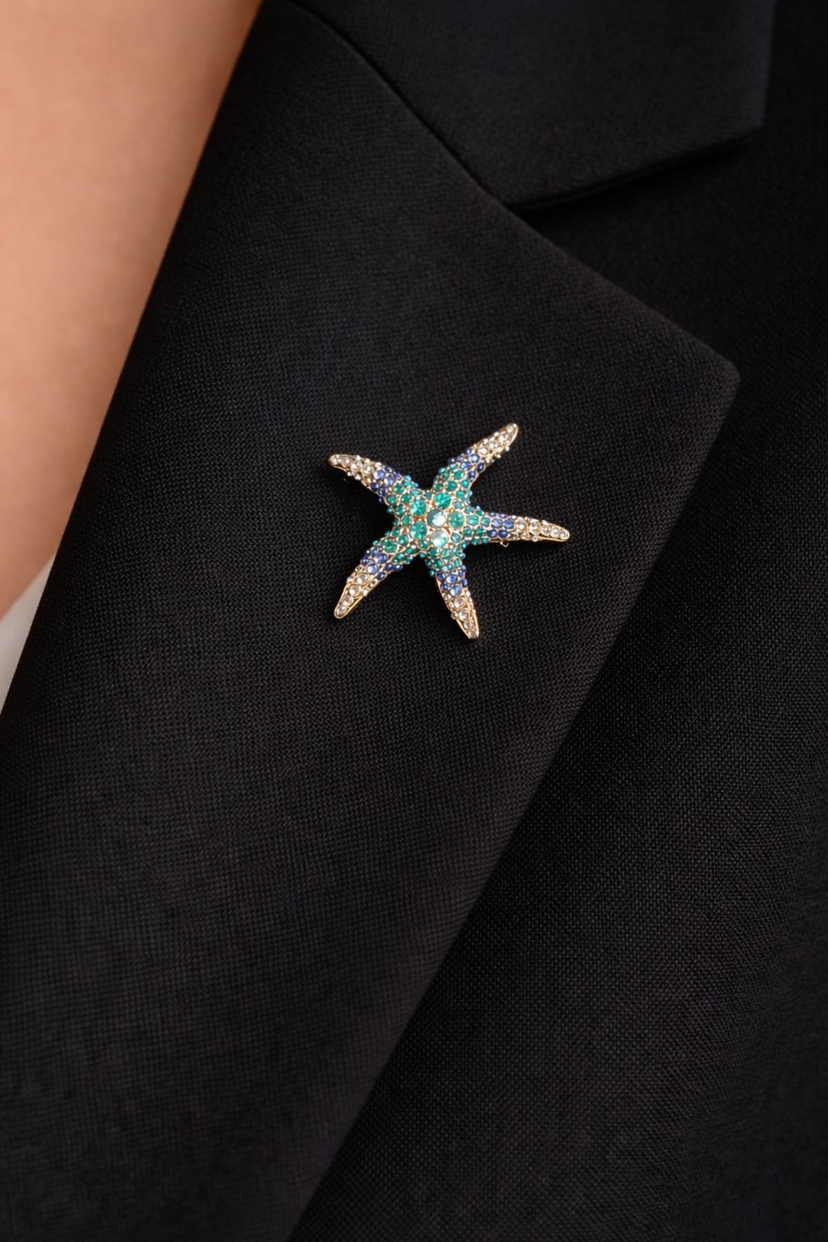 İZEV Taşlı Deniz Yıldızı Figürlü Broş