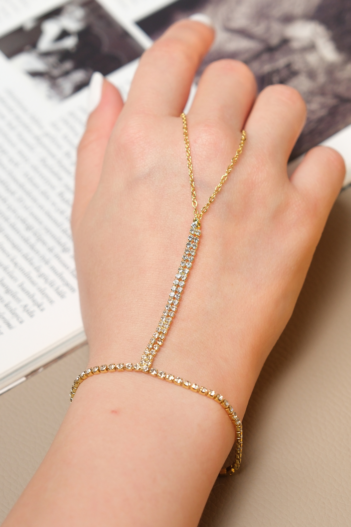 pop up store 14k Altın Kaplama Üçgen Model Taşlı Şahmeran / El Aksesuarı