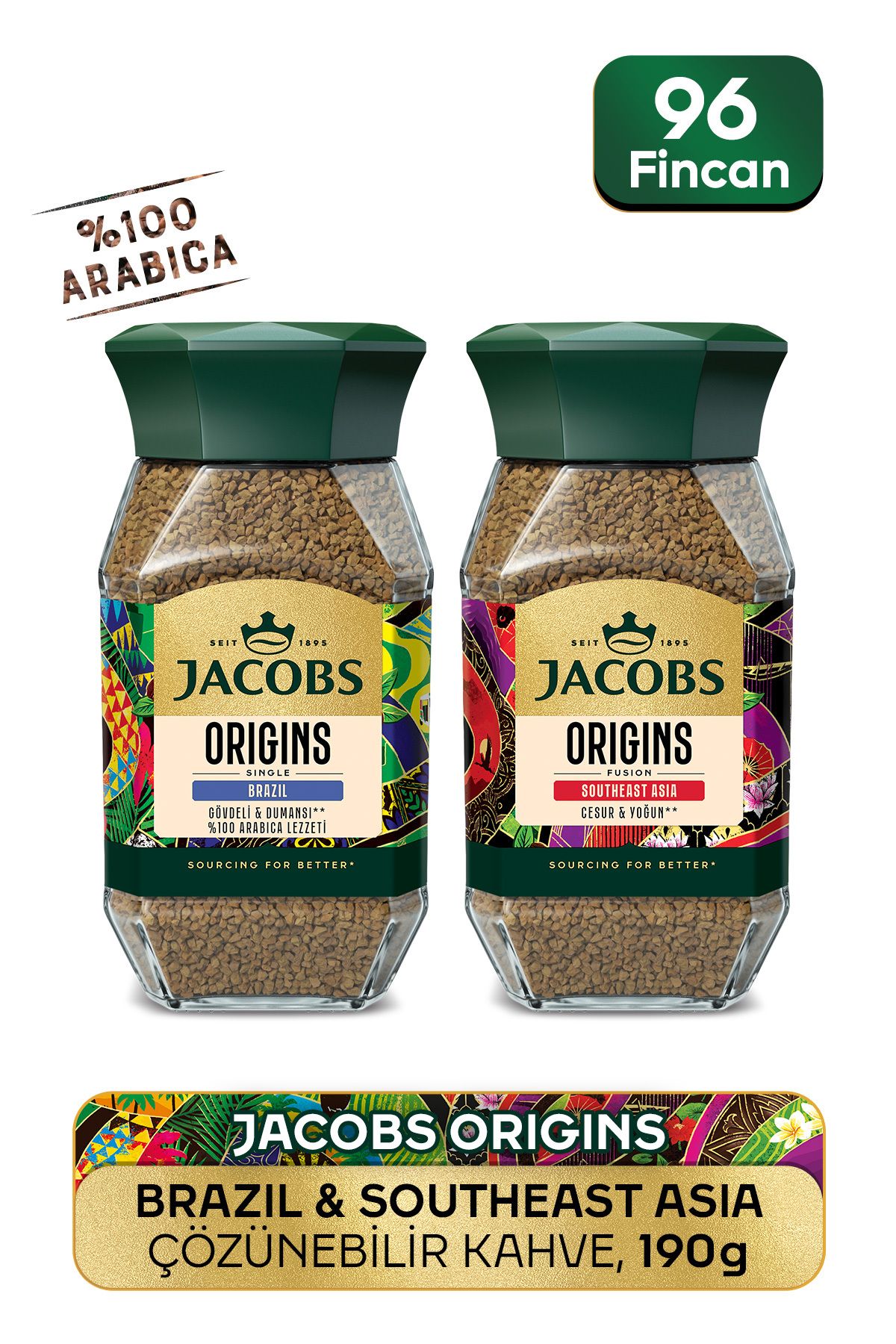 Jacobs Origins Brazil & Southeast Asia Çözüneblir Kahve 2 X 95g ürünü ucuz fiyat, hızlı kargo ve kredi kartına 12 ay taksit imkanı ile hemen sitemizden sipariş verin.