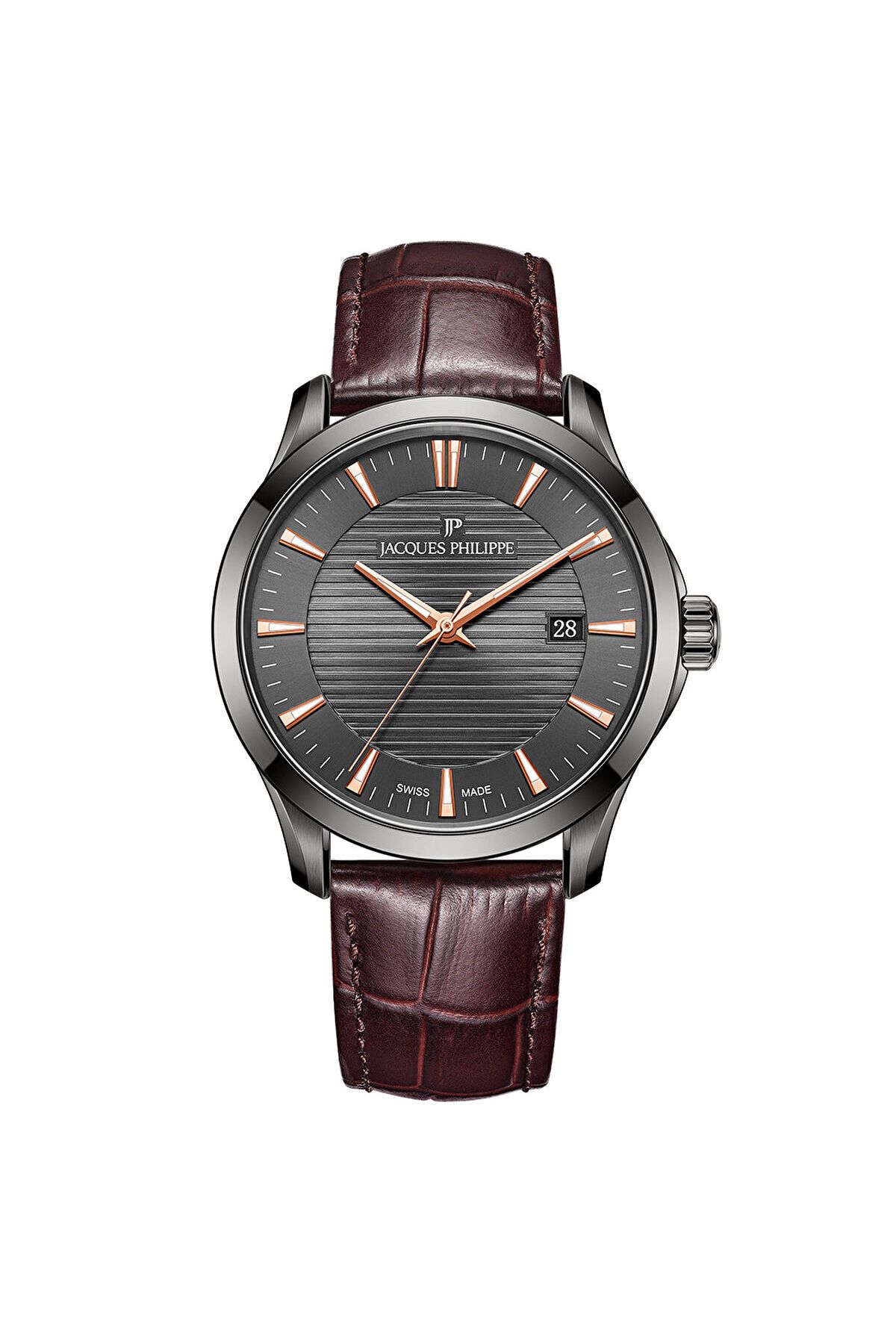 CaseDiameter:40 mm WaterProof:5 ATM CaseThickness:9 mm DialType:Analog KasaMateryali:Çelik HayvansalIcerikBilgisi:Dana Derisi StrapLanyardProperty:Deri Yaş Grubu:Erkek Gender:Erkek CategoryName:Erkek Klasik Saat CaseColor:Füme DialColor:Füme Mensei:İsviçre BrandName:Jacques Philippe StrapLanyardColor:Kahverengi Style:Klasik Saatler Technology:Quartz GlassProperty:Safir Machine:Swiss Made Calendar:Var CaseStone:Yok Alarm:Yok DialStone:Yok KadranTasi:Yok Kronometre:Yok CaseShape:Yuvarlak