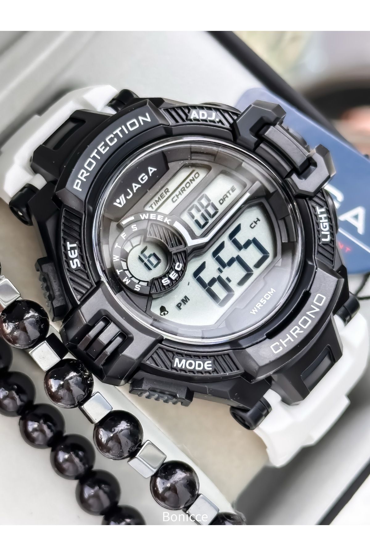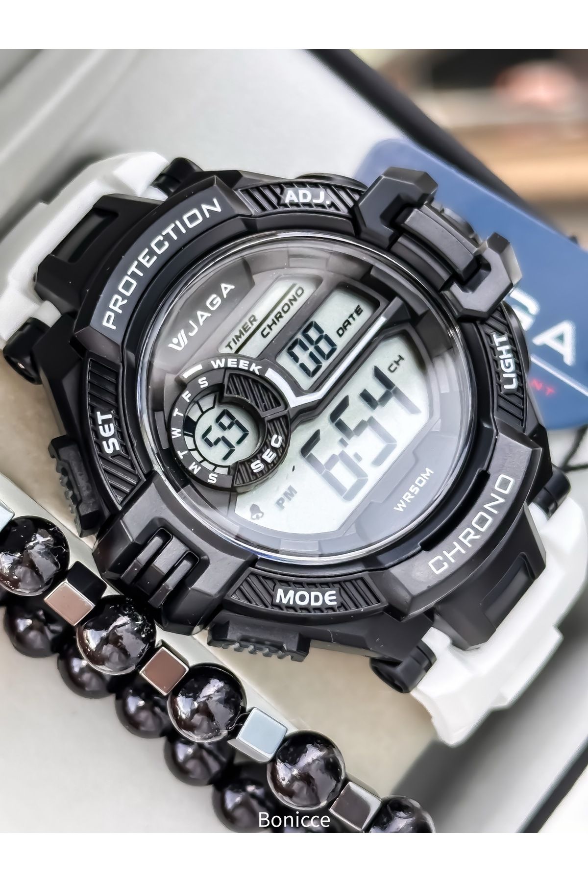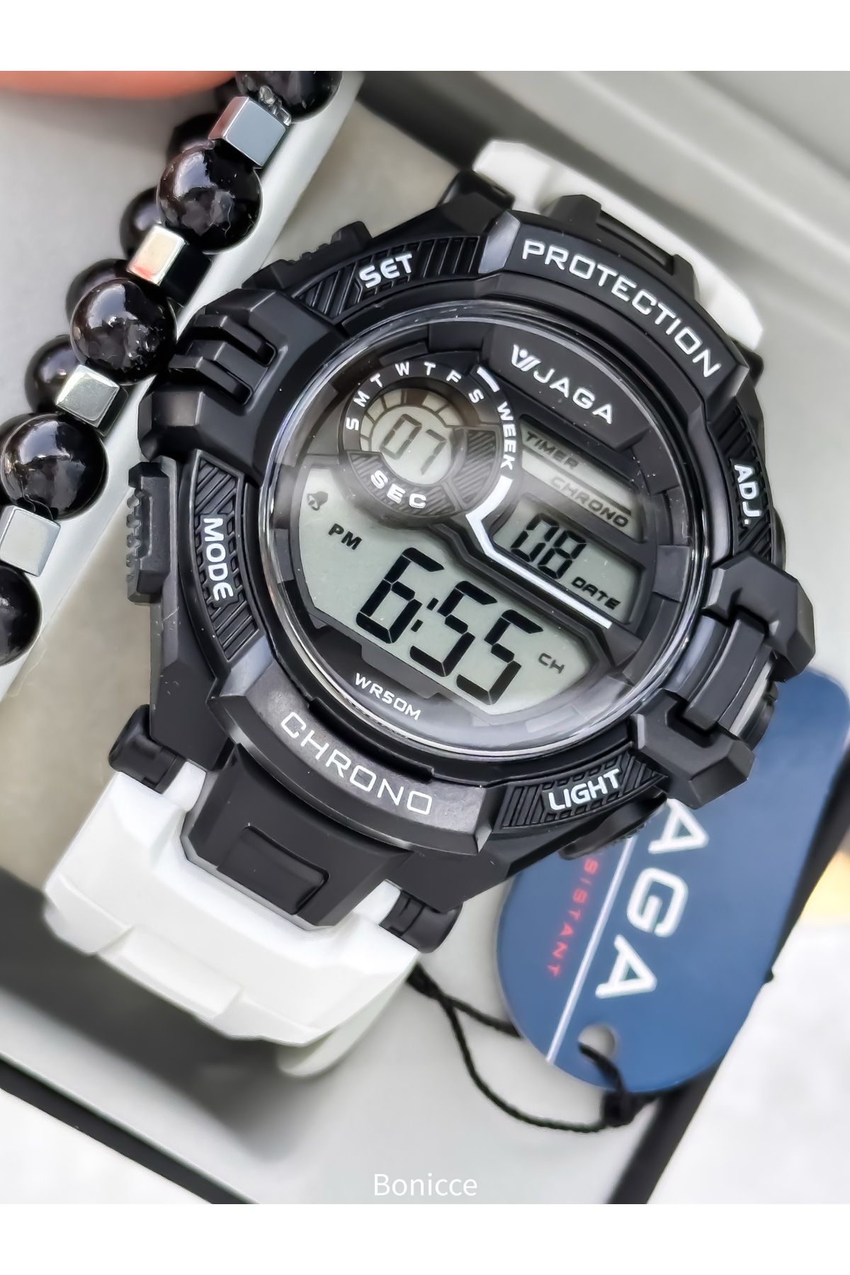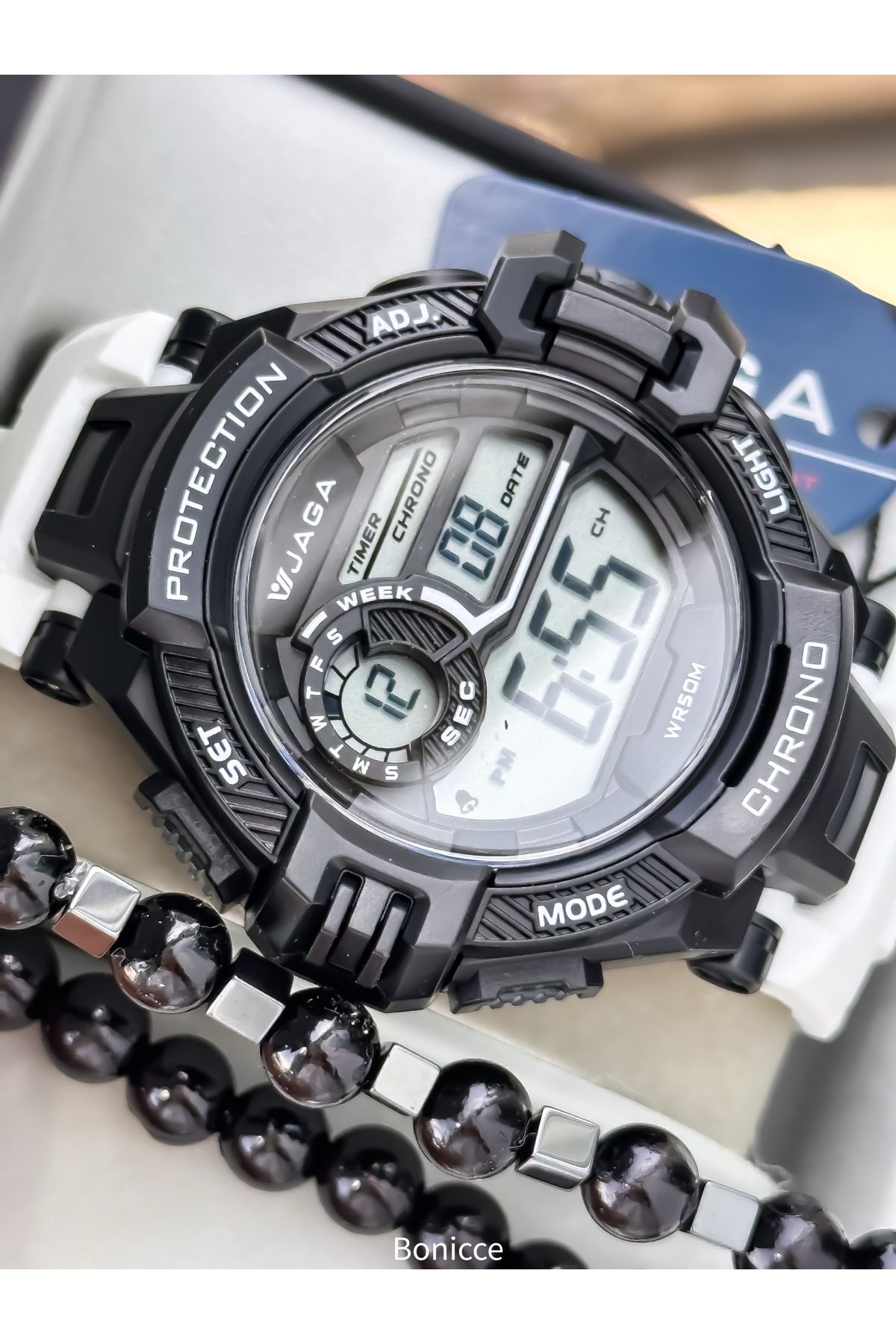 Jaga Marka 2yıl Garantili Havuz Deniz Kullanımına Uygun,silikon Kordon Beyaz Dijital Spor Kol Saat