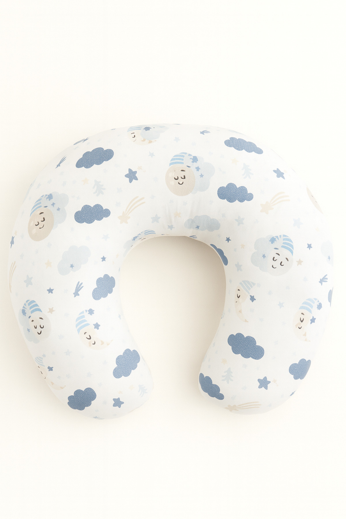 Jaju Baby Mavi Ay ve Bulut Desenli Müslin Emzirme Yastığı – %100 Pamuklu | Ergonomik & Yıkanabilir Kılıf