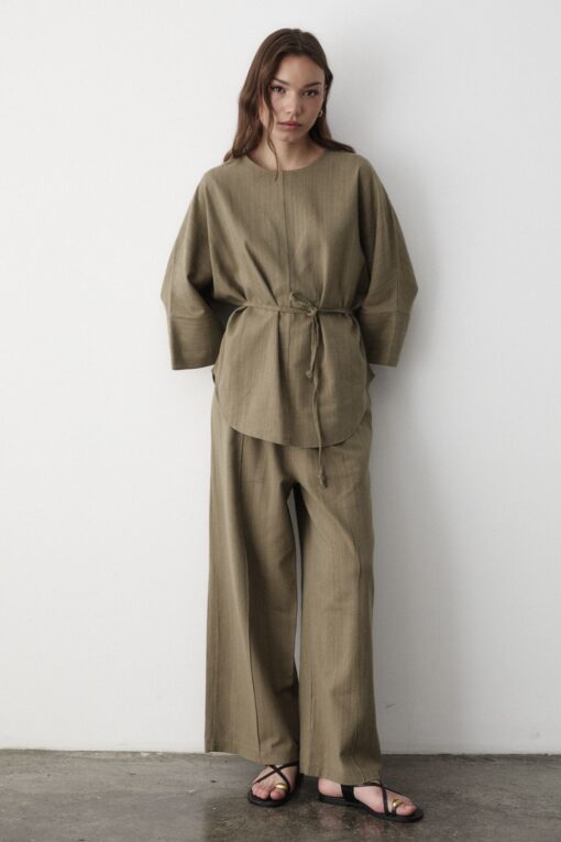 JASTE Kadın Keten Oversize Üst Bluz & Lastikli Bol Paça Pantolon İkili Takım