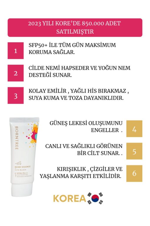 JEJUDO Borntree Berry Sun Block 50ml/spf50 Pa / Yaşlanma Ve Leke Karşıtı, Alerjen Içermeyen Güneş Kremi Fiyatları, Özellikleri ve Yorumları