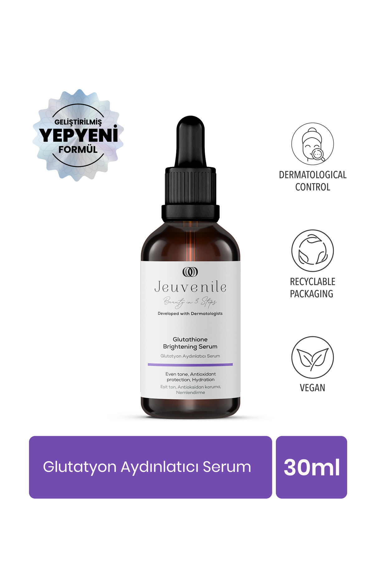Jeuvenile Glutatyon Serum – Yaşlanma Kırışıklık Karşıtı, Cilt Tonu Eşitleyici (Glutatyon,A.Arbutin,Vitamin C)