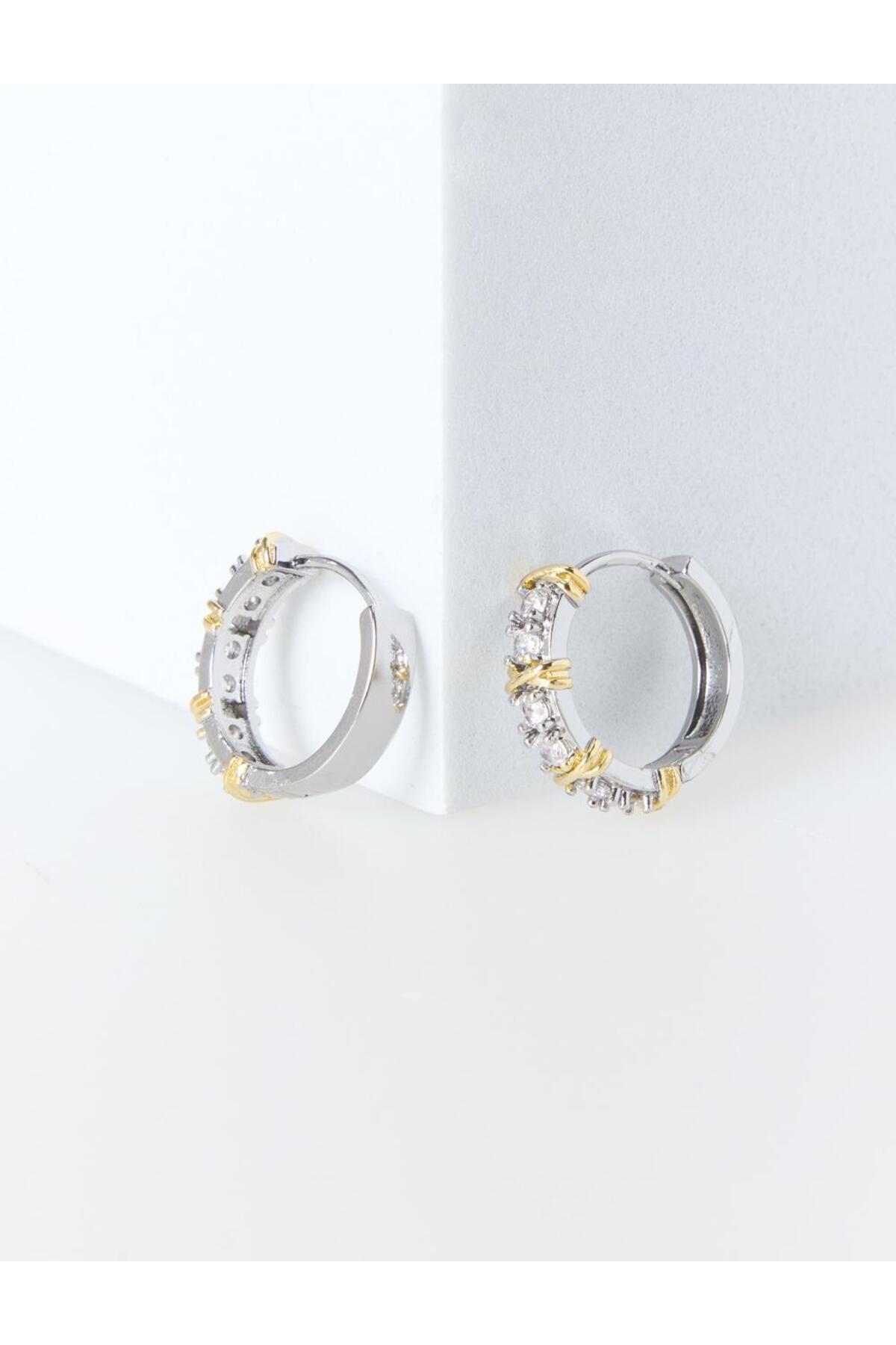 Jimmy Key Gümüş Rengi Zirkon Taşlı Zarif Halka Küpe