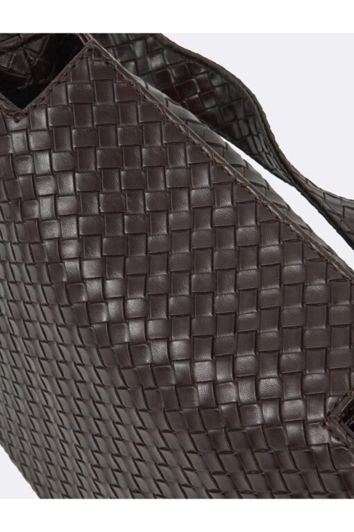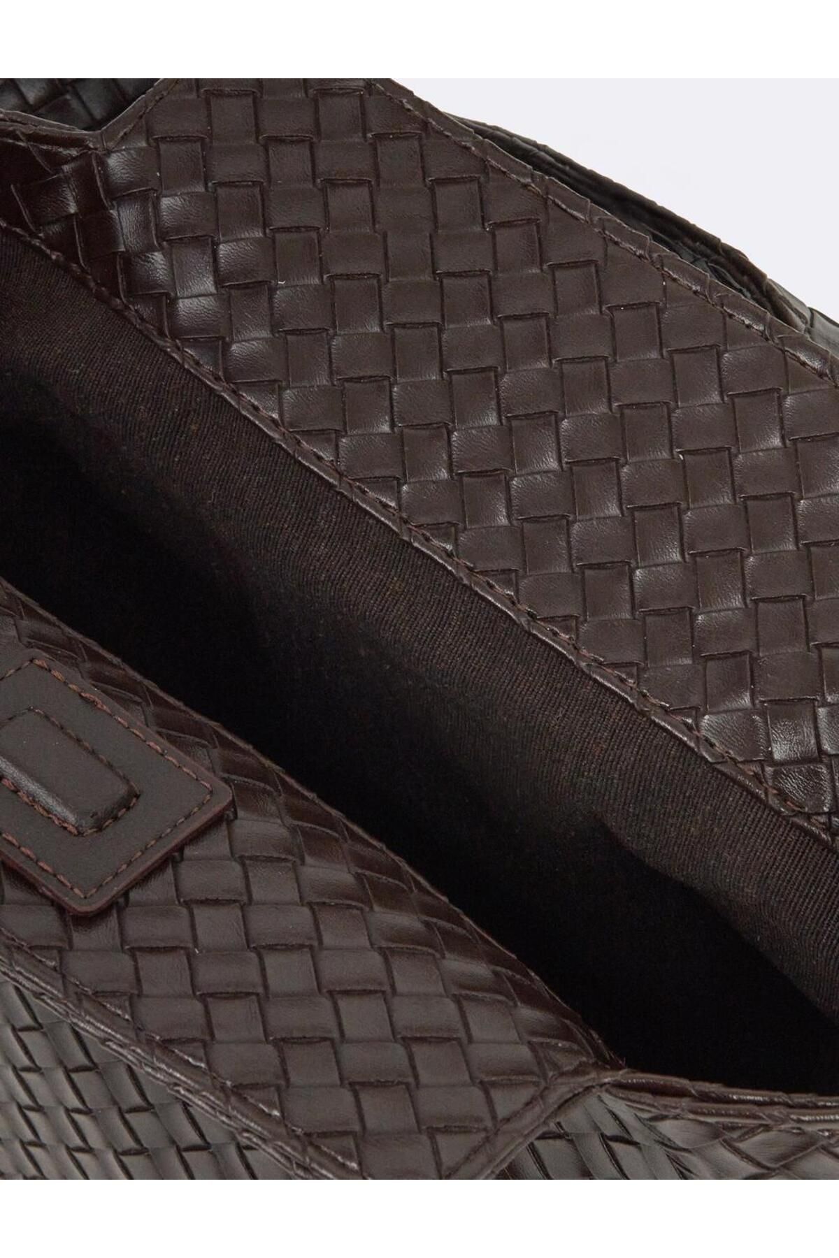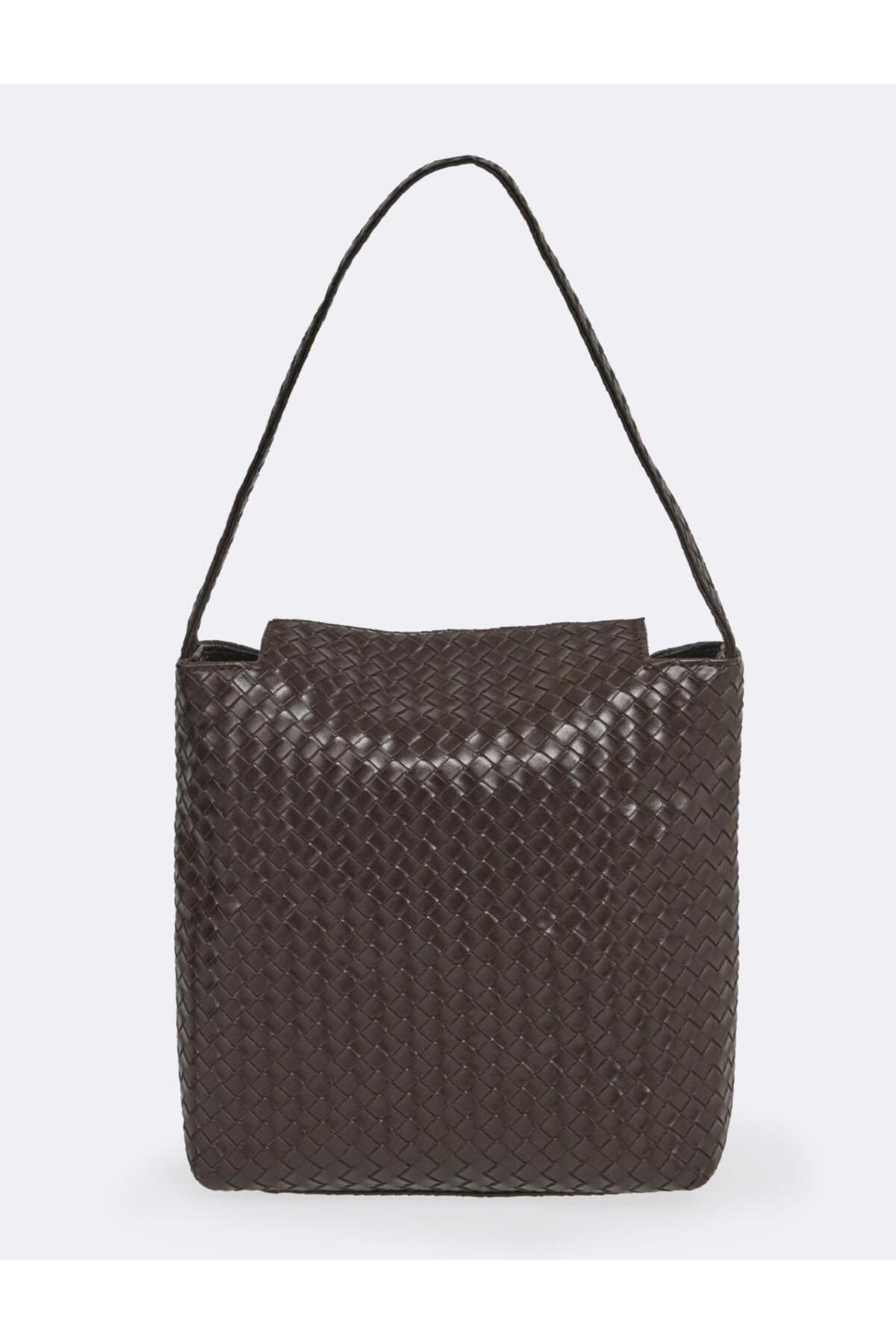 Kahverengi Örgü Desenli Deri Görünümlü Çanta