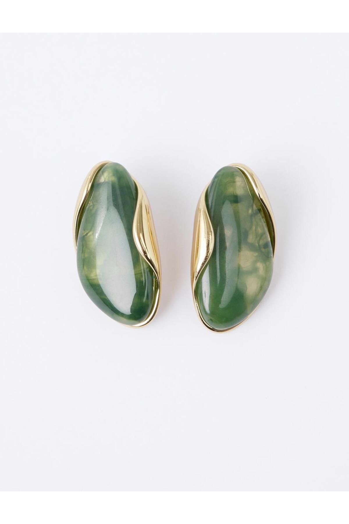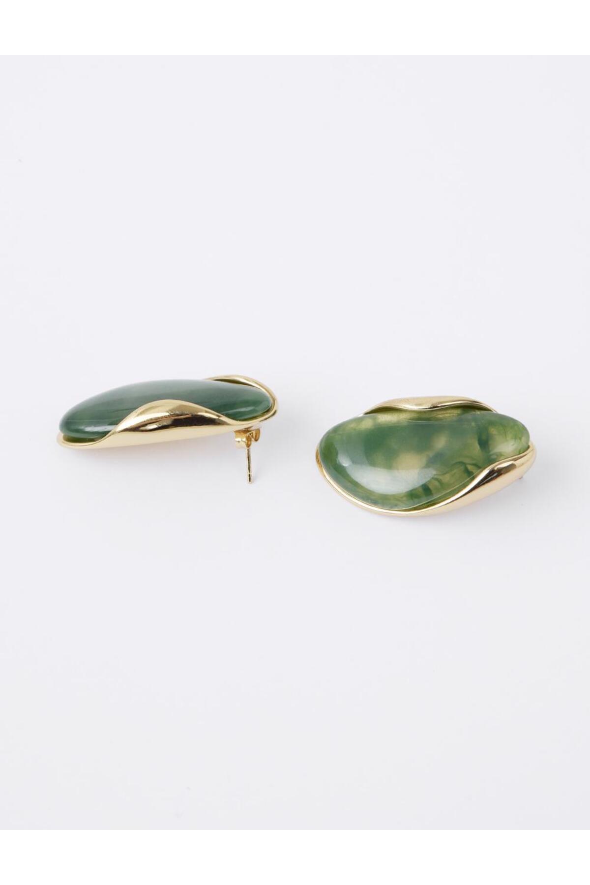 Jimmy Key Yeşil Asimetrik Damla Figürlü Modern Küpe
