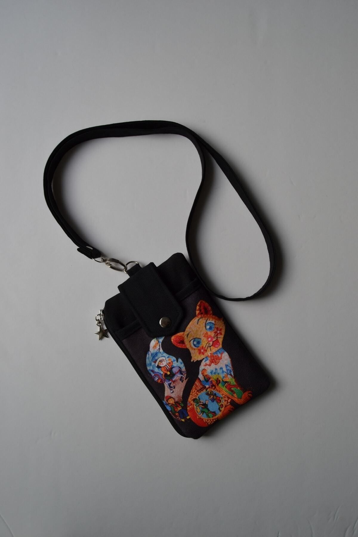 JINJI Baskılı Kedi Desenli Telefon Bölmeli Cüzdan Çantası