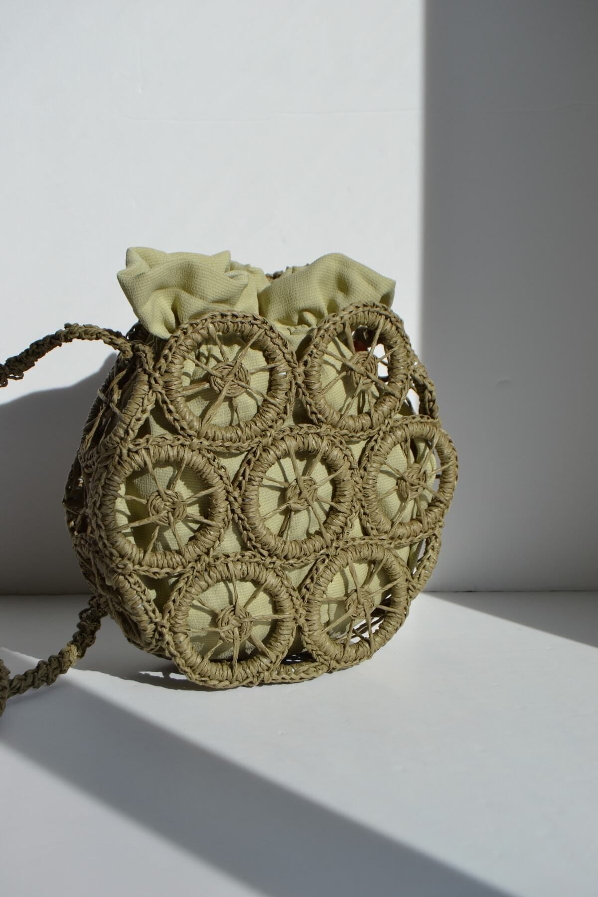 SHOP JINJI El Örgüsü Altıgen Halka Motifli Çanta Örgü çanta Halka motifli Astarlı