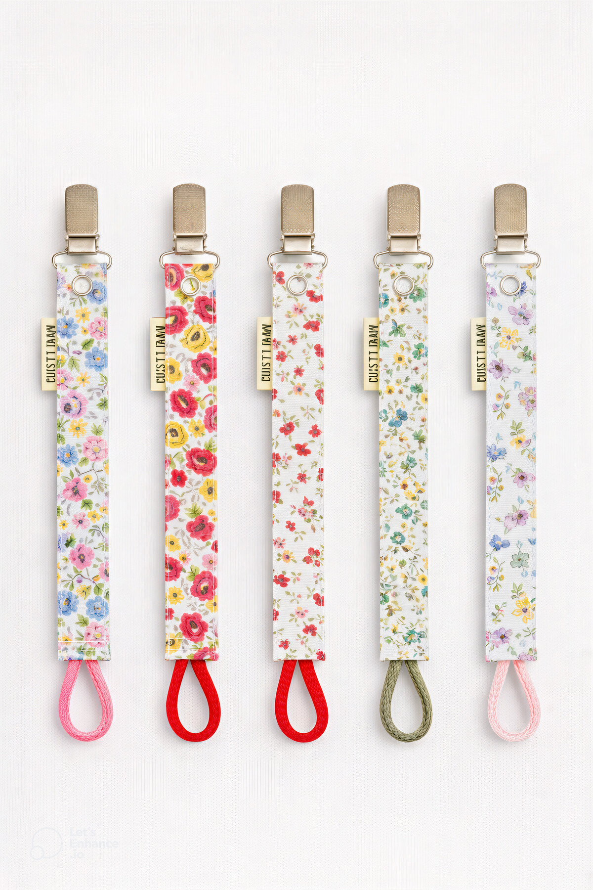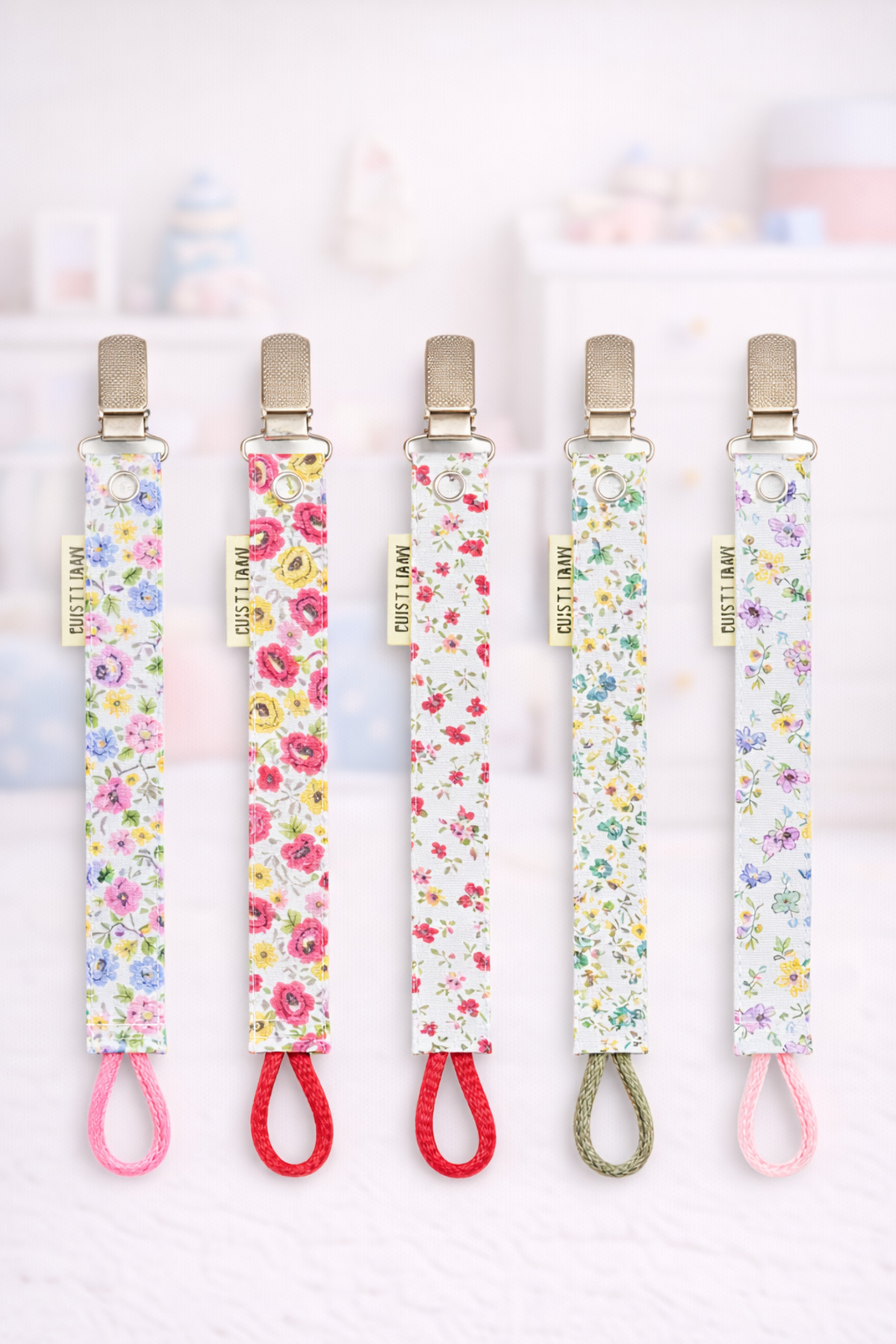 The Cloudish Shop Bebek Pamuk Müslin Fiyonklu emzik askısı ahşap kancalı – Krem Çiçekli