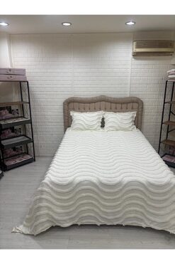 miar home perde tekstil Krem Şönil İskandinav Yatak Örtüsü Takımı 250 x 260 cm – Valonlu Model 2 Adet 50 x 70 Yastık Kılıfı
