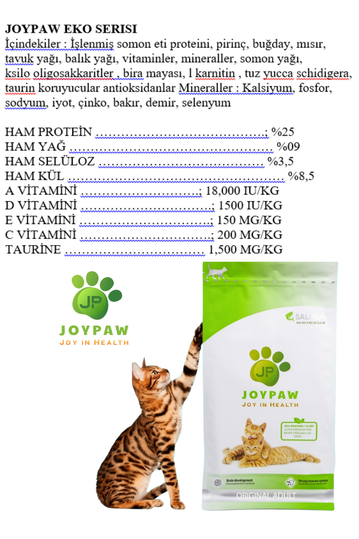 JOYPAW Sığır Etli Kedi Maması Kısır 3 Kg Eko